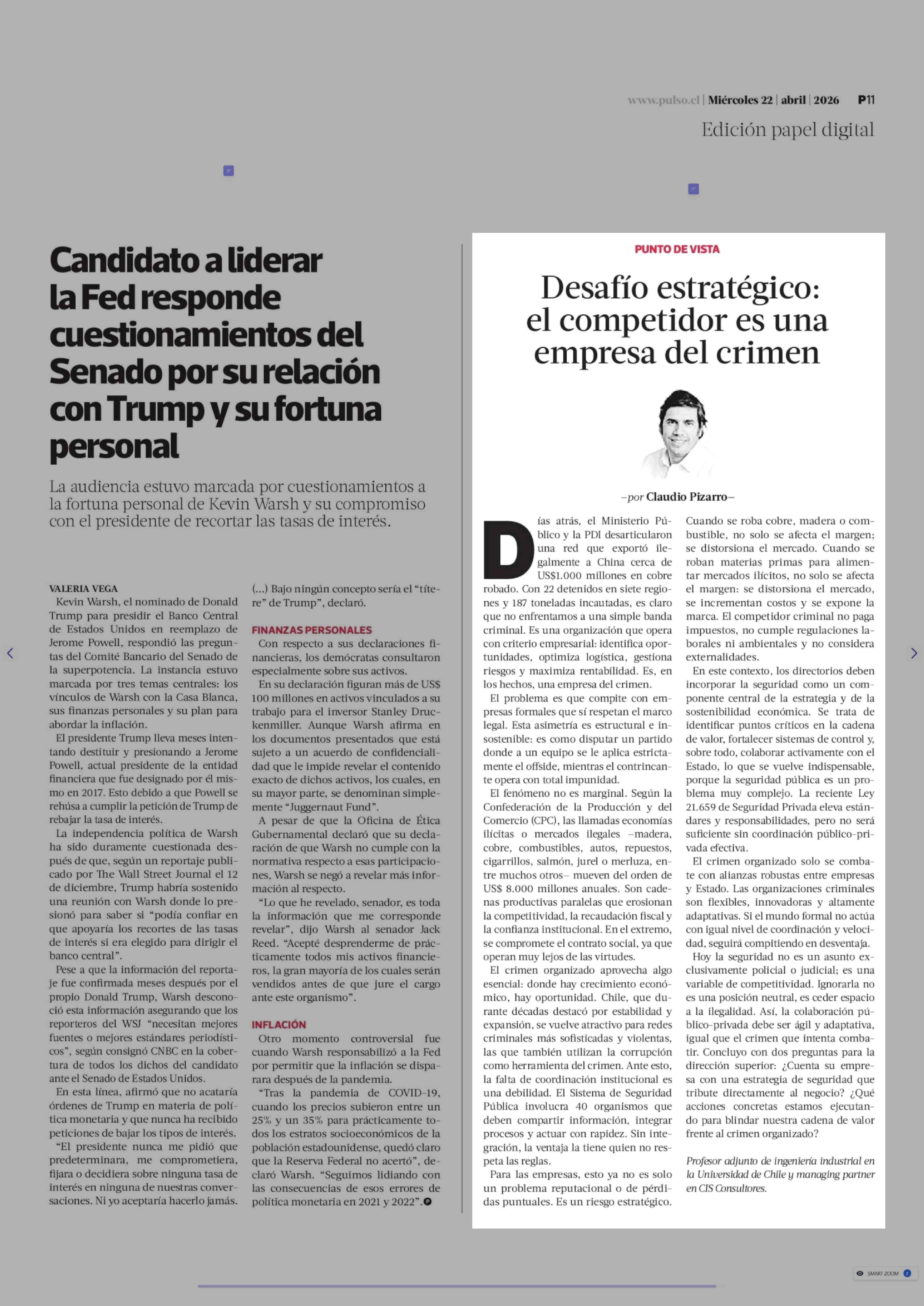 Título: Columnas de Opinión: Desafío estratégico: el competidor es una empresa del crimen