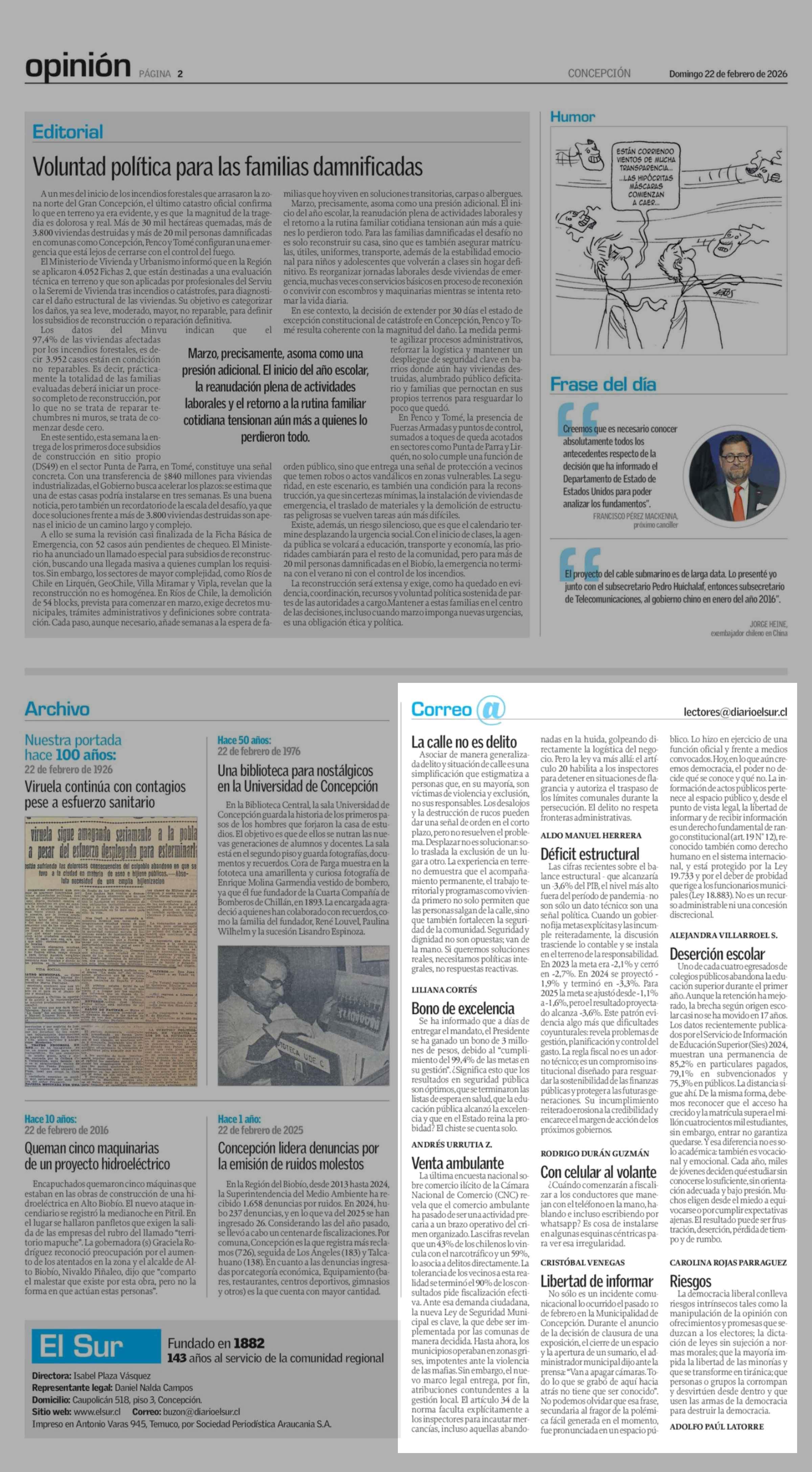 Fecha: 22-02-2026 Sector: Cartas Región: Región del Bío-Bío