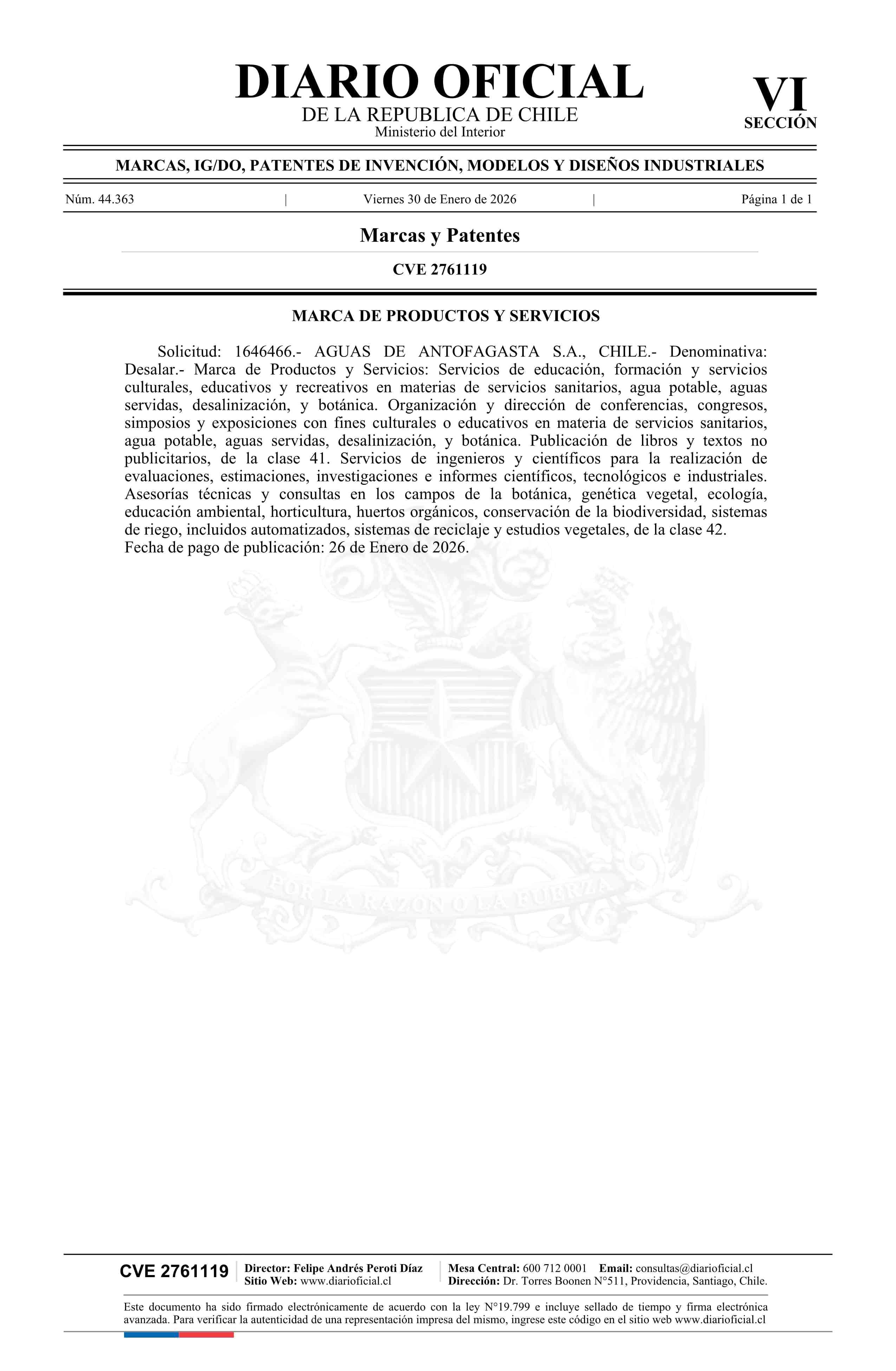 Solicitud número 1646466.- Desalar 30-01-2026 Diario Oficial Edición Electrónica |
