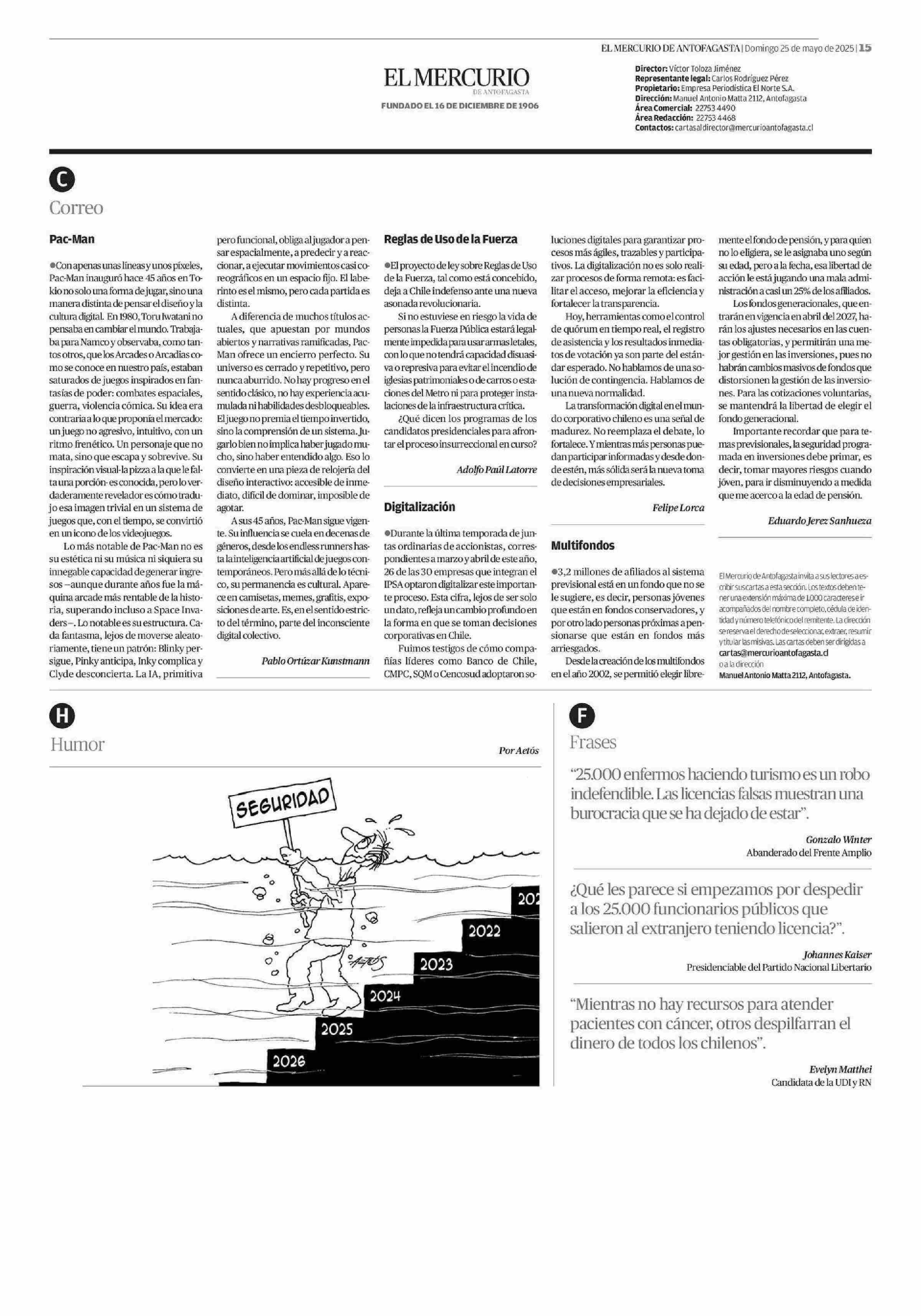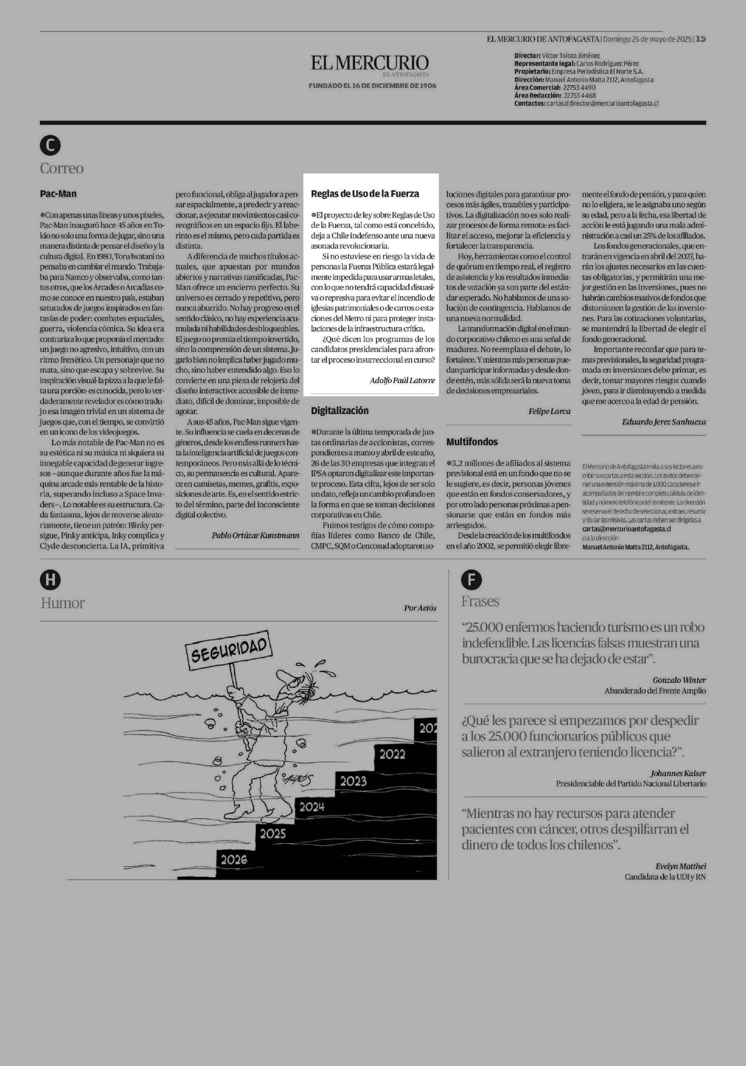 CARTAS: REGLAS DEL USO DE LA FUERZA 25-05-2025 El Mercurio de Antofagasta |