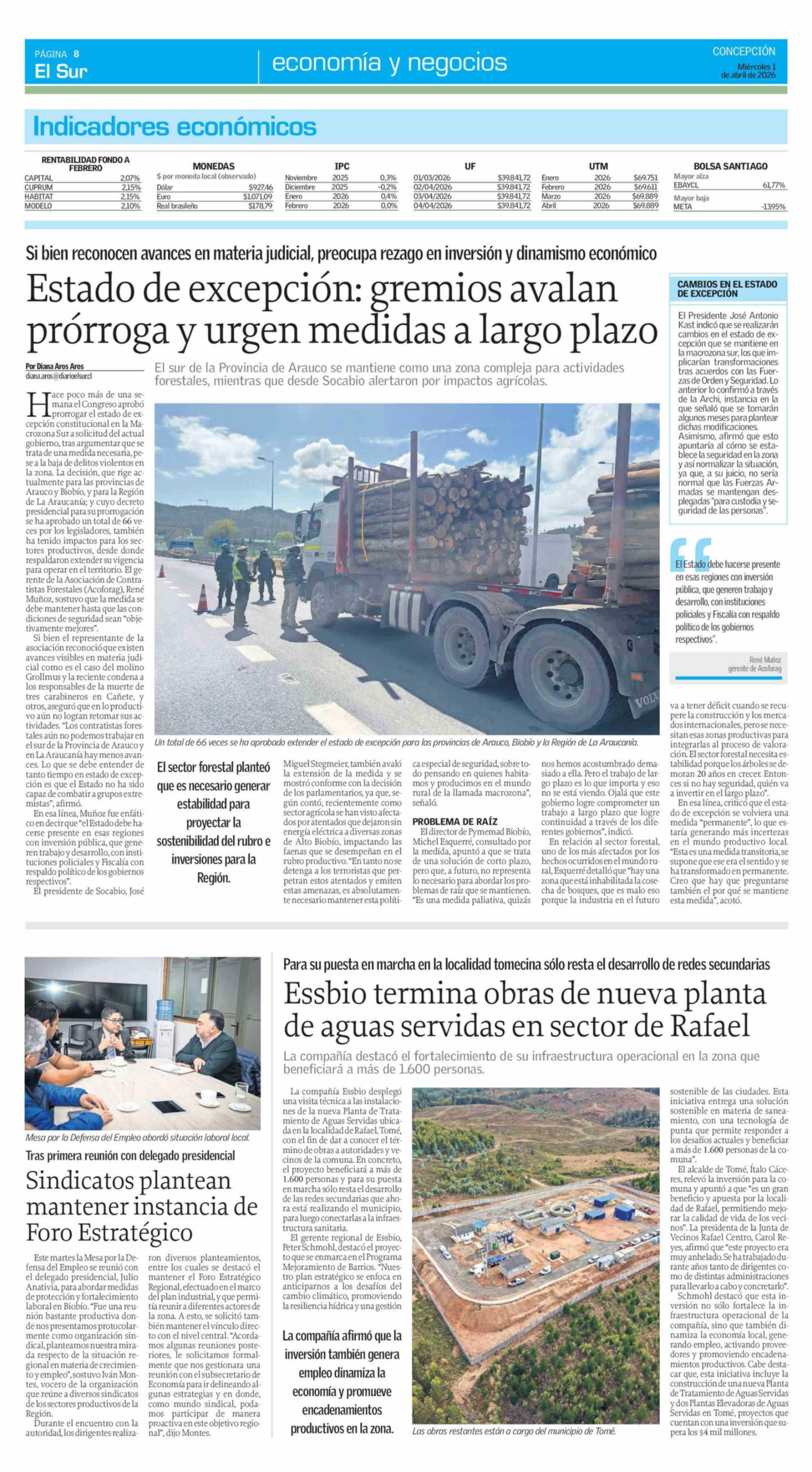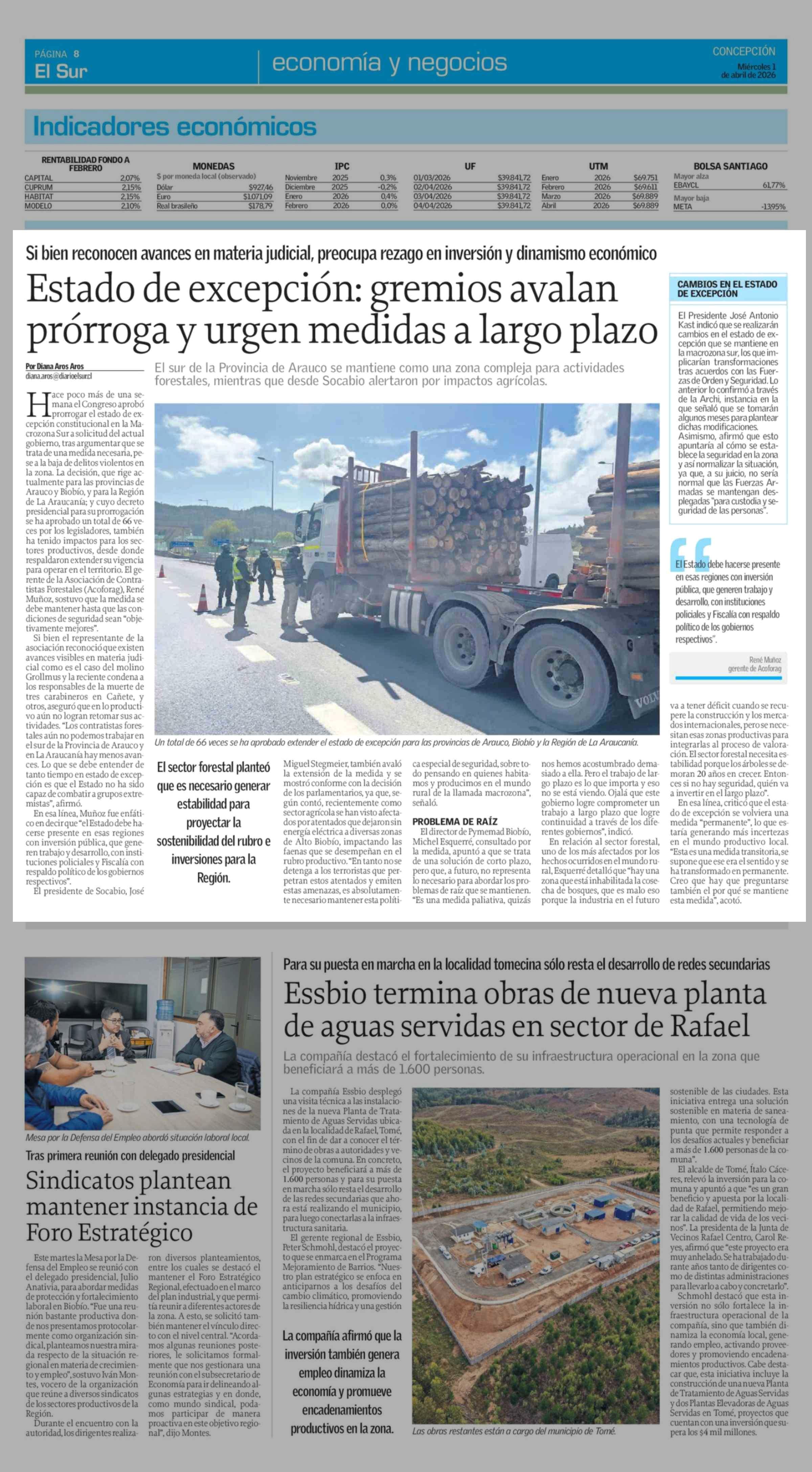 Estado de excepción: gremios avalan prórroga y urgen medidas a largo plazo 01-04-2026 El Sur |