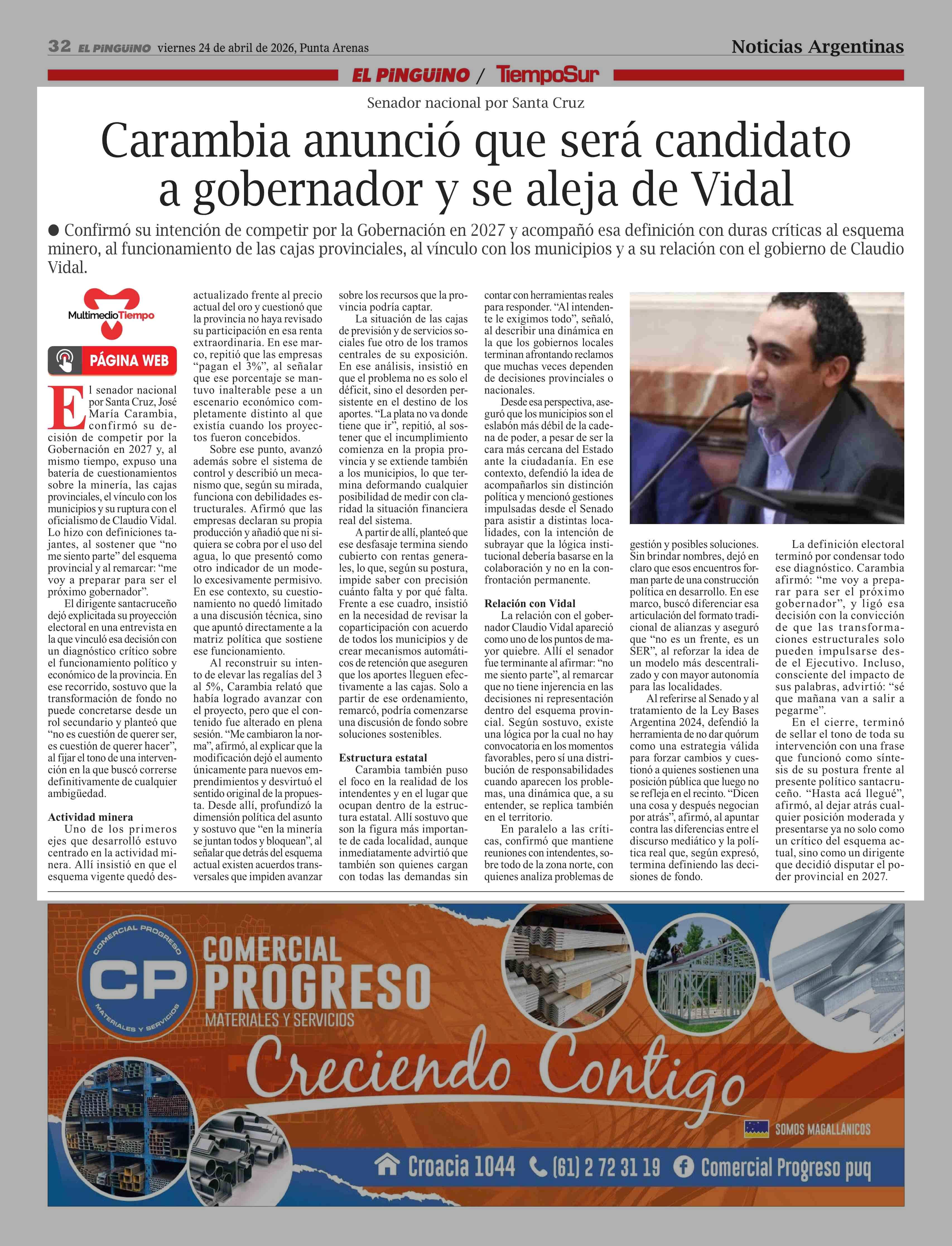 Título: Carambia anunció que será candidato a gobernador y se aleja de Vidal