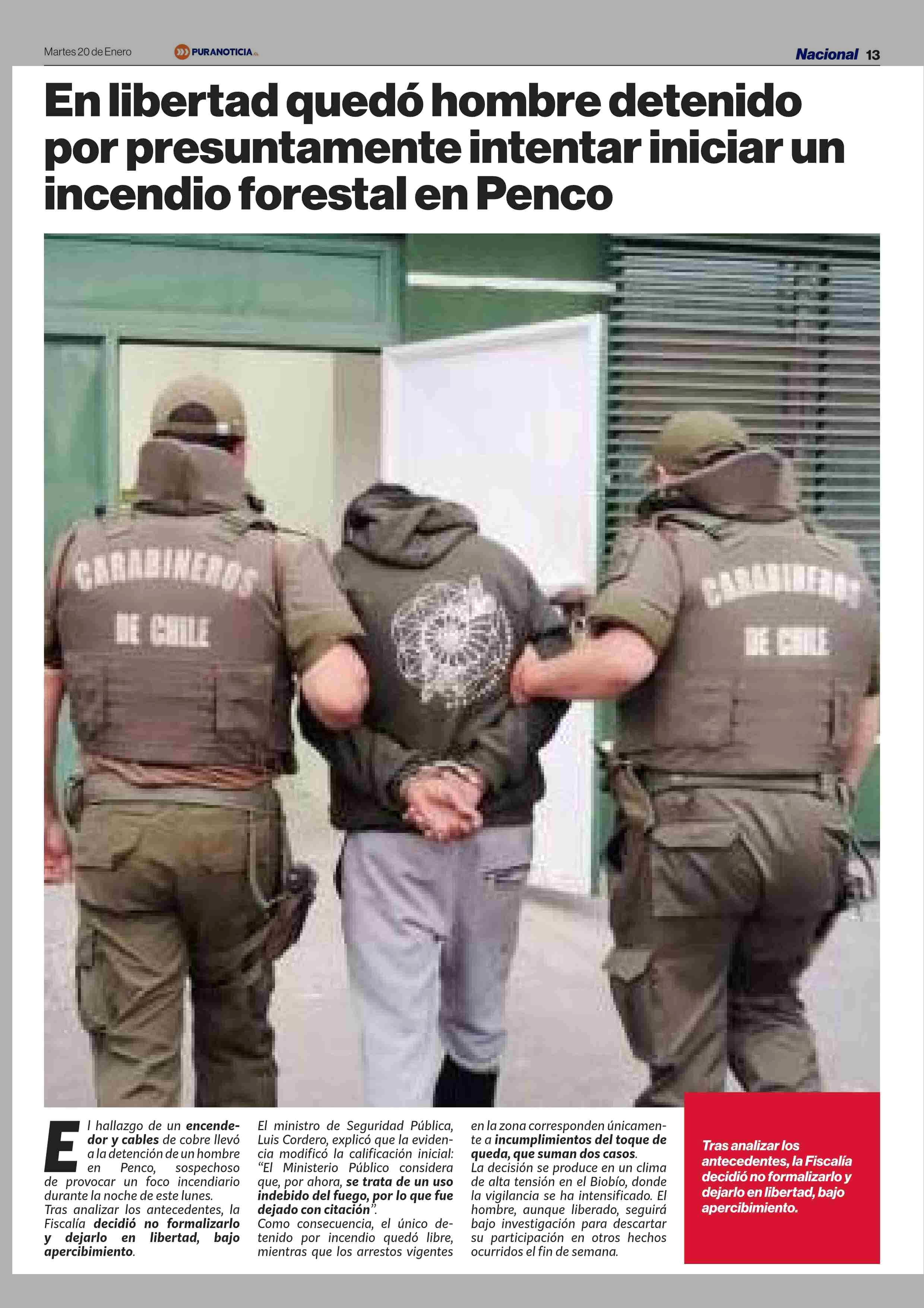 Título: En libertad quedó hombre detenido por presuntamente intentar iniciar un incendio forestal en Penco