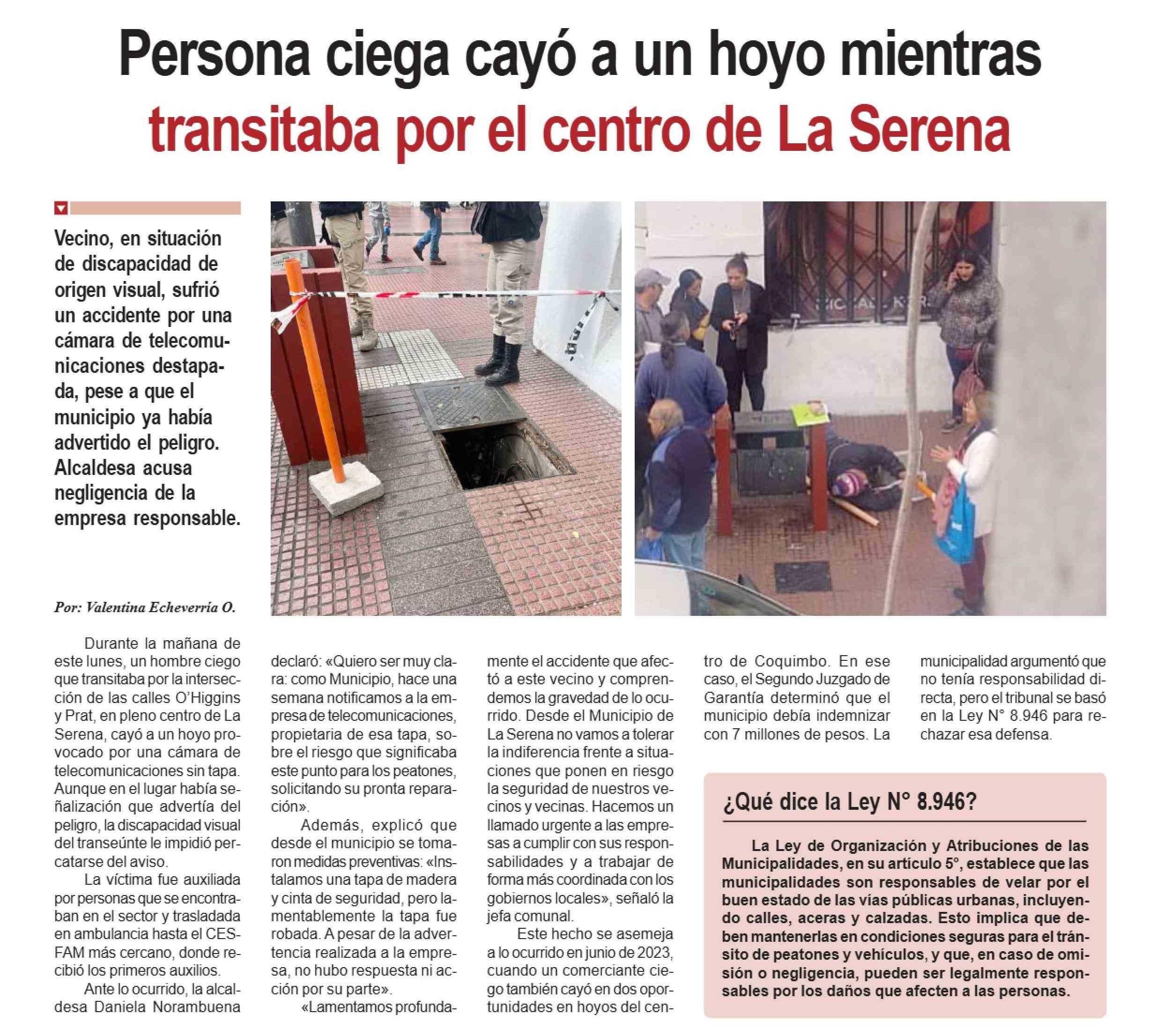 | Título: | Persona ciega cayó a un hoyo mientras transitaba por el centro de La Serena |