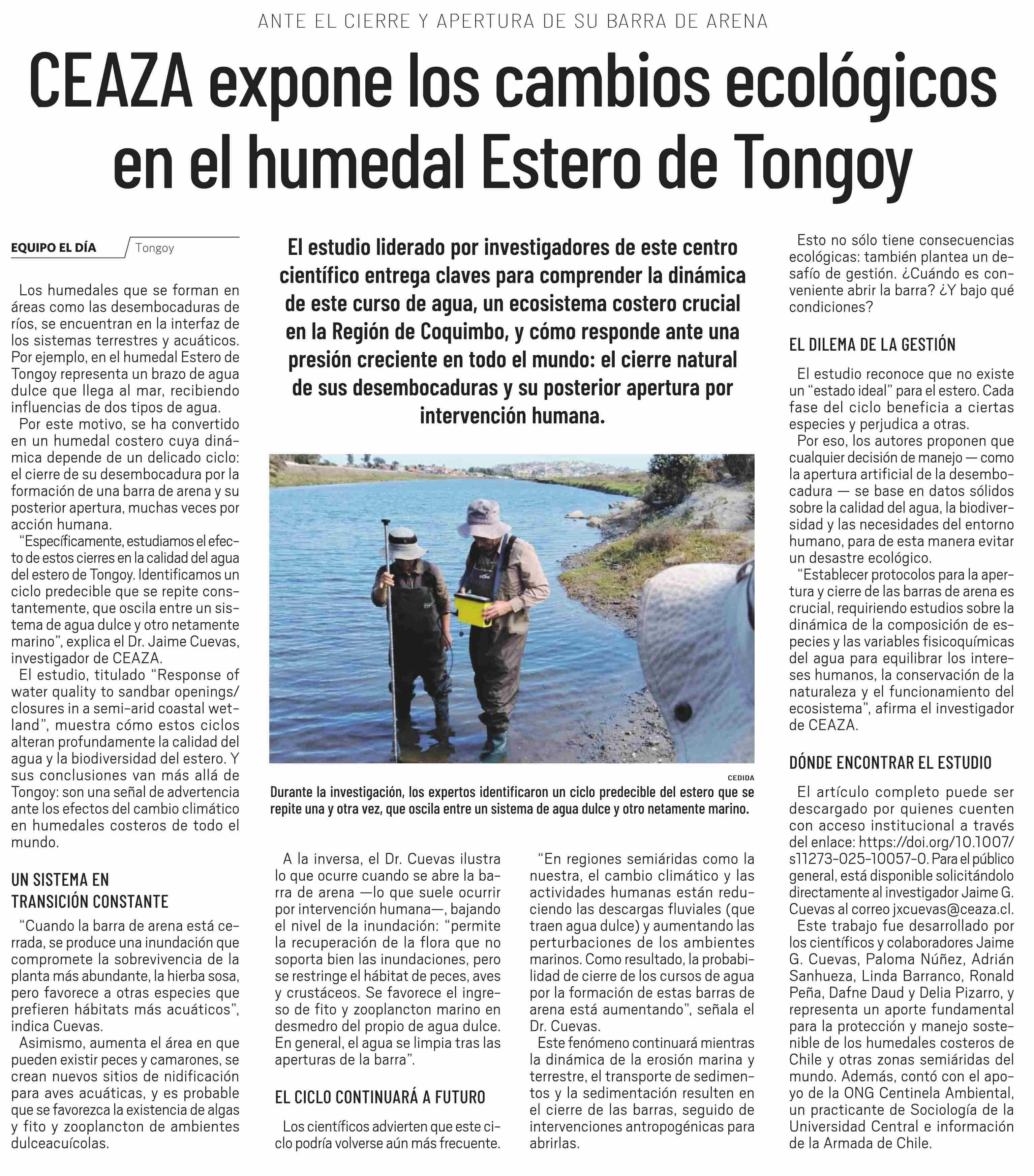 Título: CEAZA expone los cambios ecológicos en el humedal Estero de Tongoy