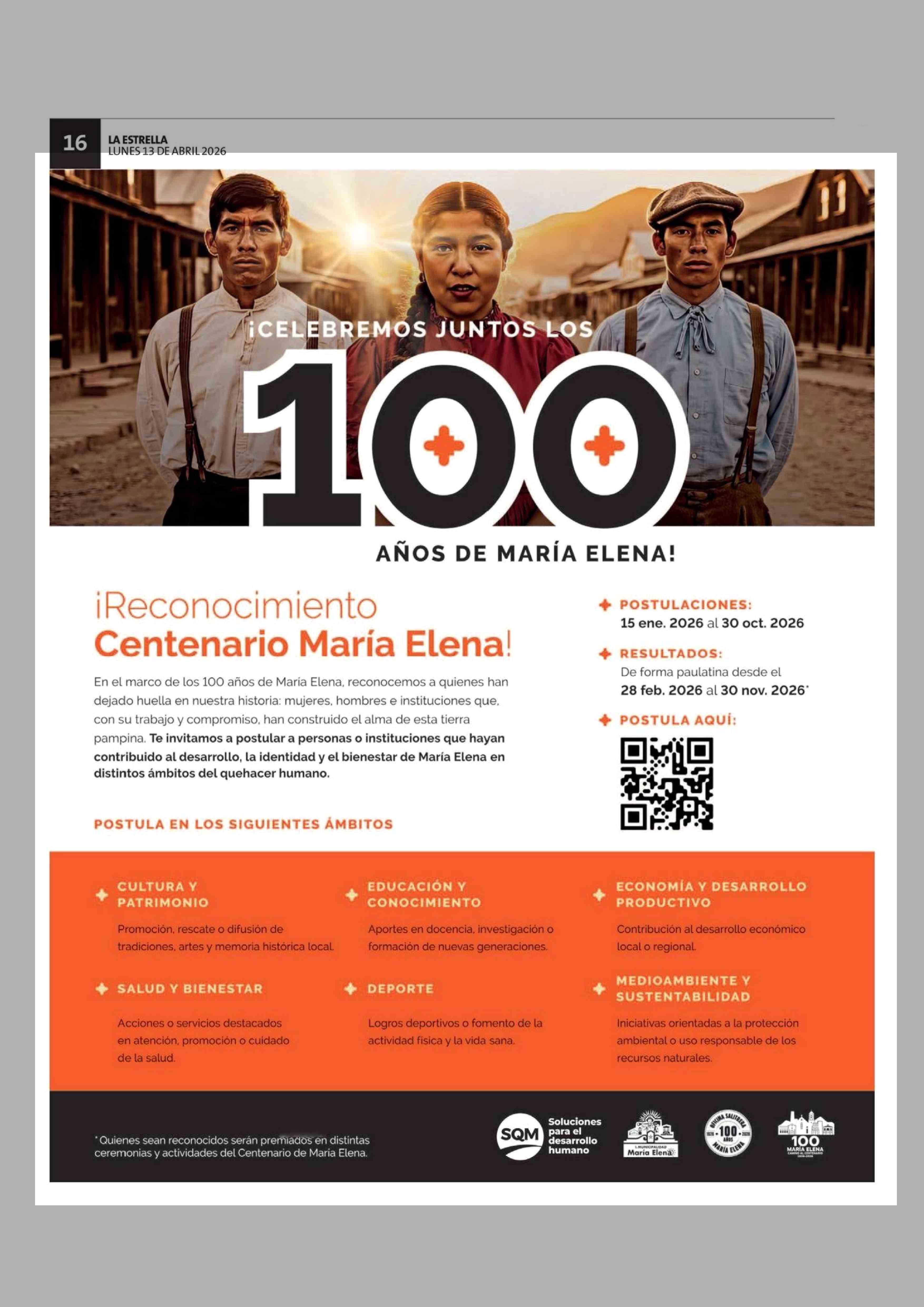 Título: ¡CELEBREMOS JUNTOS LOS 100 AÑOS DE MARÍA ELENA!
