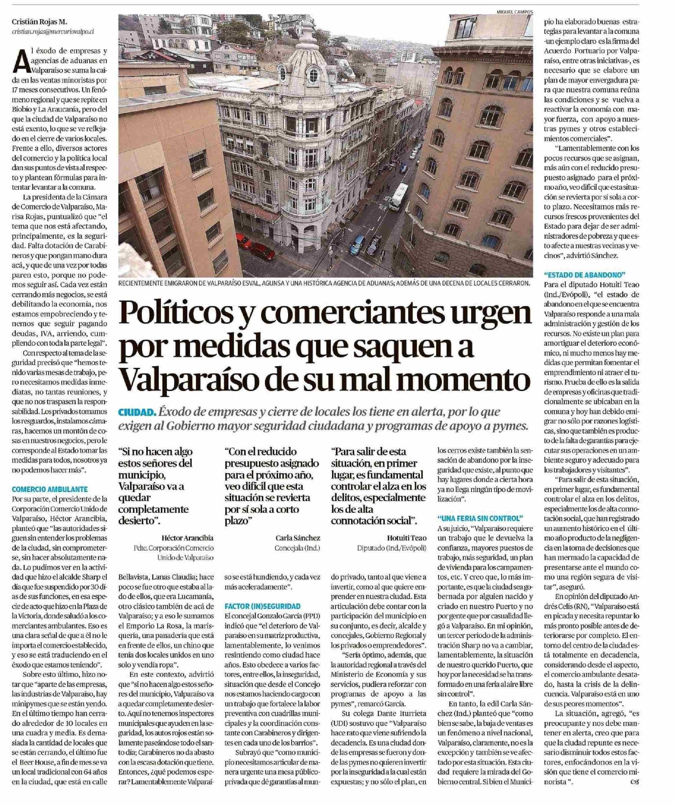 Políticos y comerciantes urgen por medidas que saquen a Valparaíso de su mal momento 19-11-2023 El Mercurio de Valparaíso |