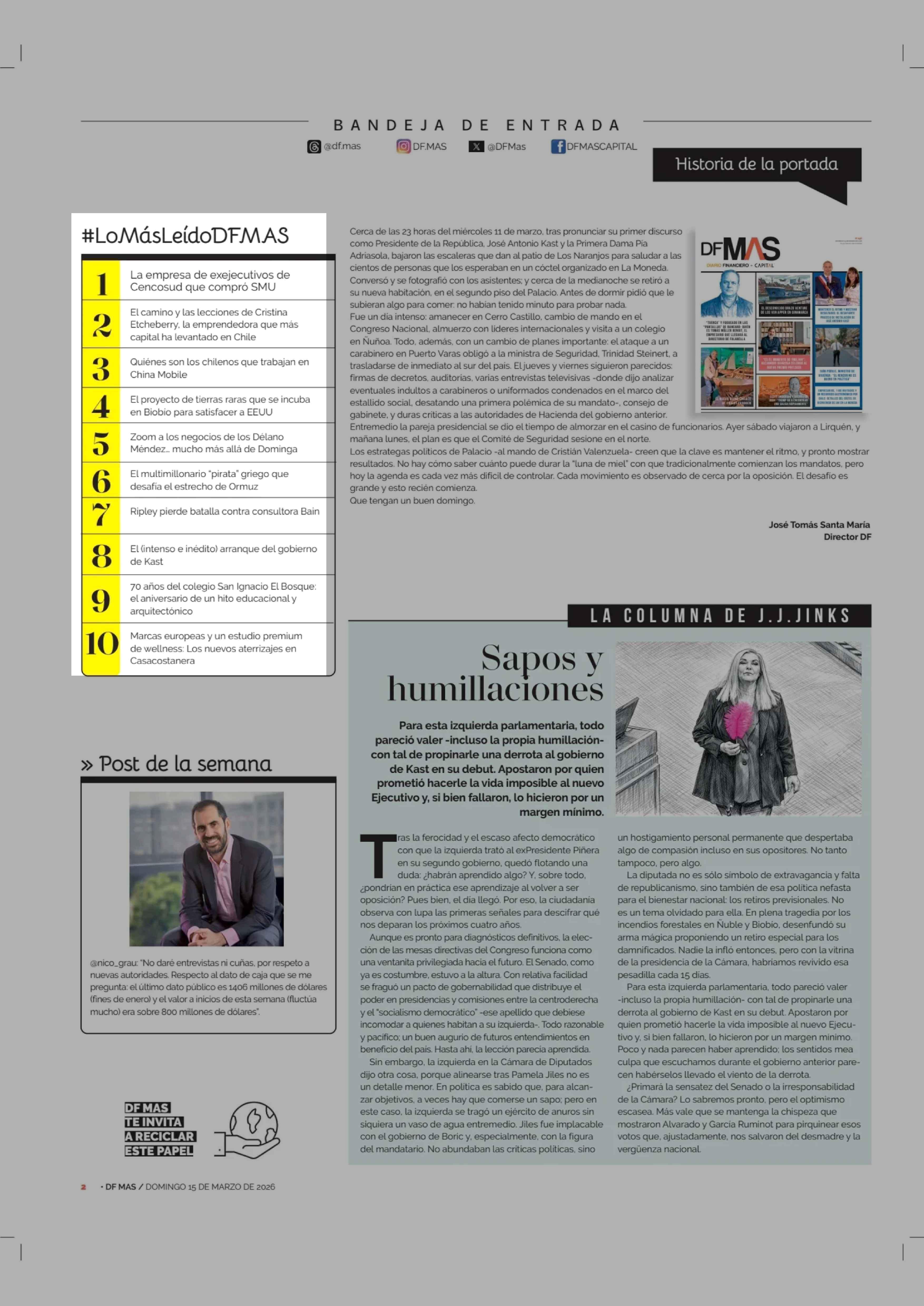 #LoMásLeídoDFMAS 15-03-2026 Diario Financiero |