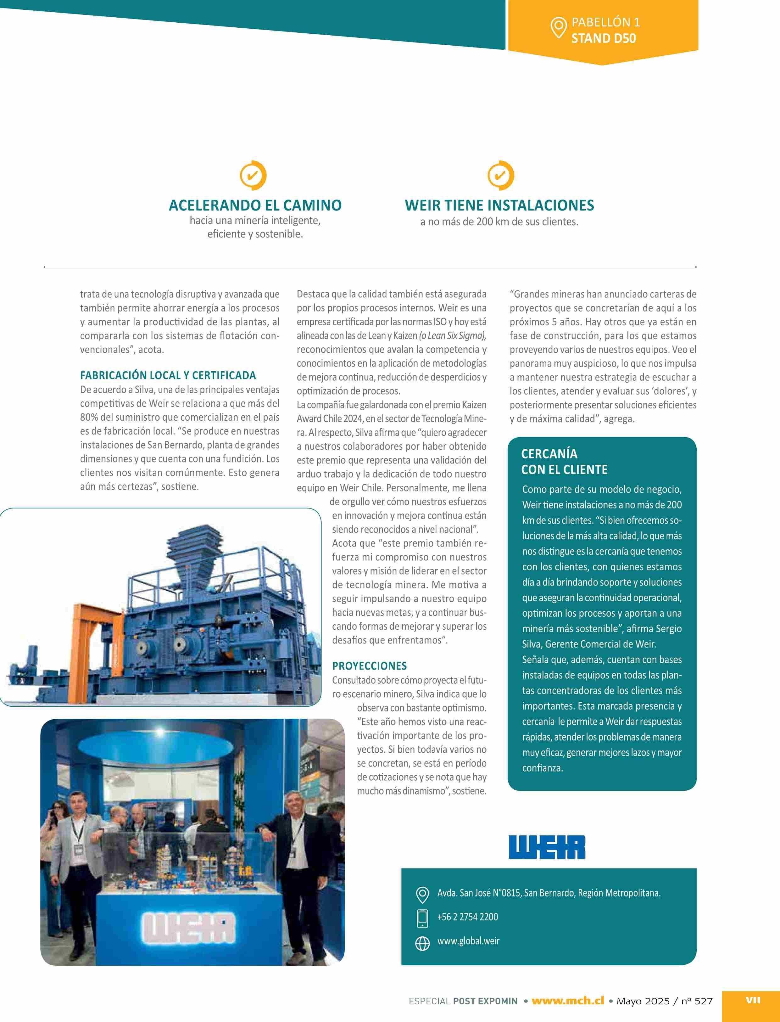 Título: WEIR EXHIBIÓ EN EXPOMIN VENTAJAS DE SUS SOLUCIONES INTEGRALES QUE APORTAN A LA MINERÍA SOSTENIBLE