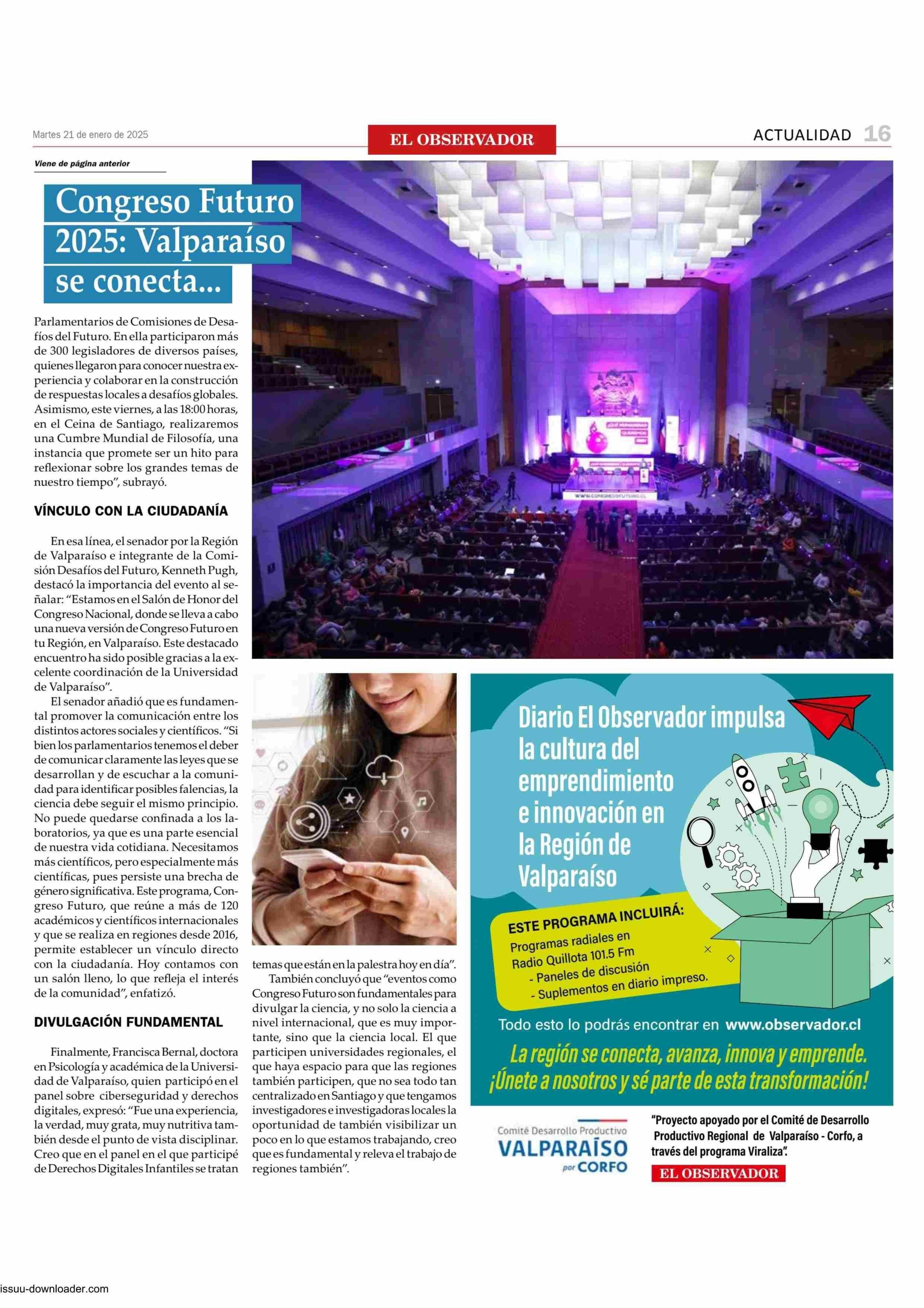 Congreso Futuro 2025: Valparaíso se conecta con la ciencia, el conocimiento y la Innovación 21-01-2025 El Observador Vespertino |