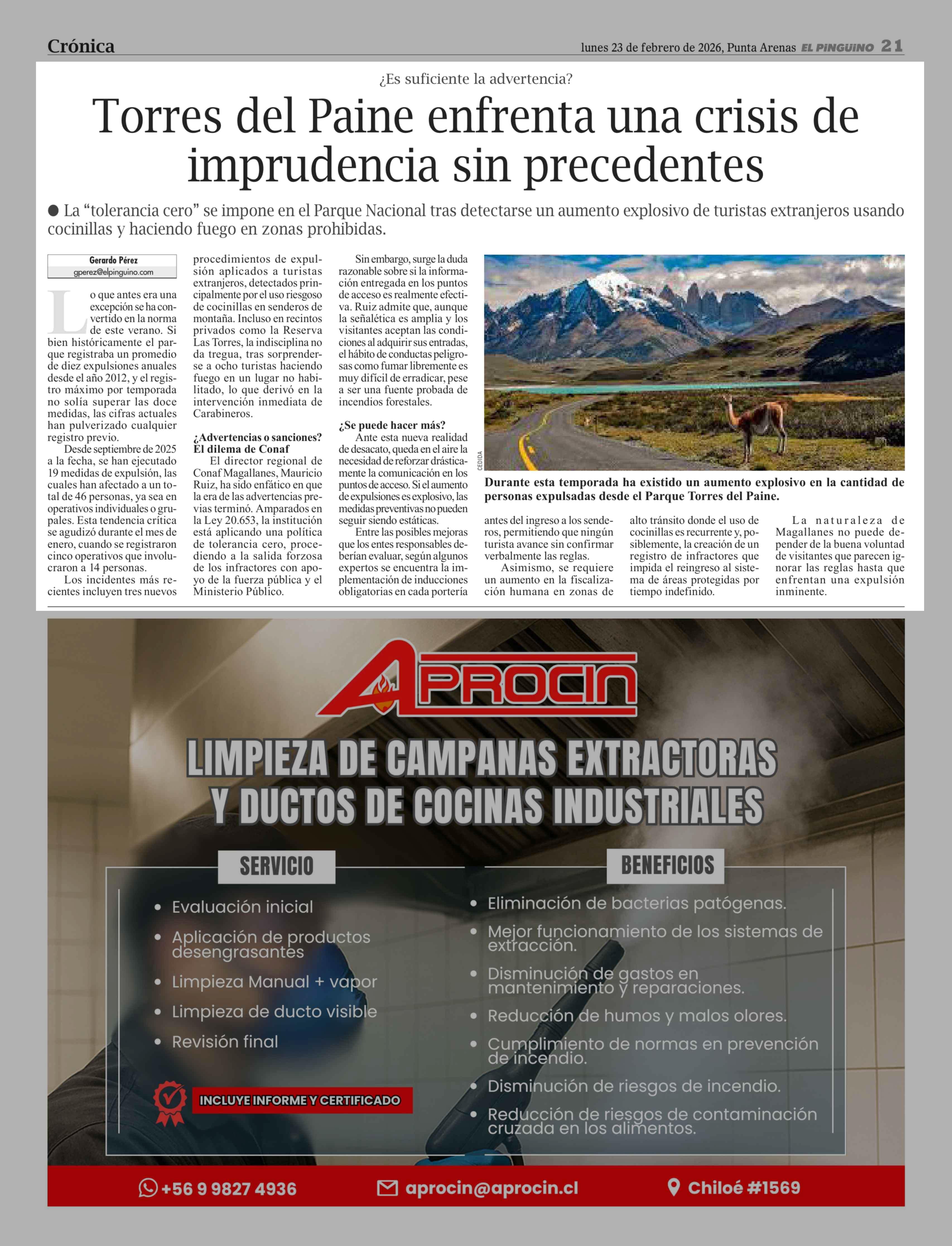 | Fecha: | 23-02-2026 | Sector: | Noticia general | Región: | Región de Magallanes y de la Antártica Chilena |