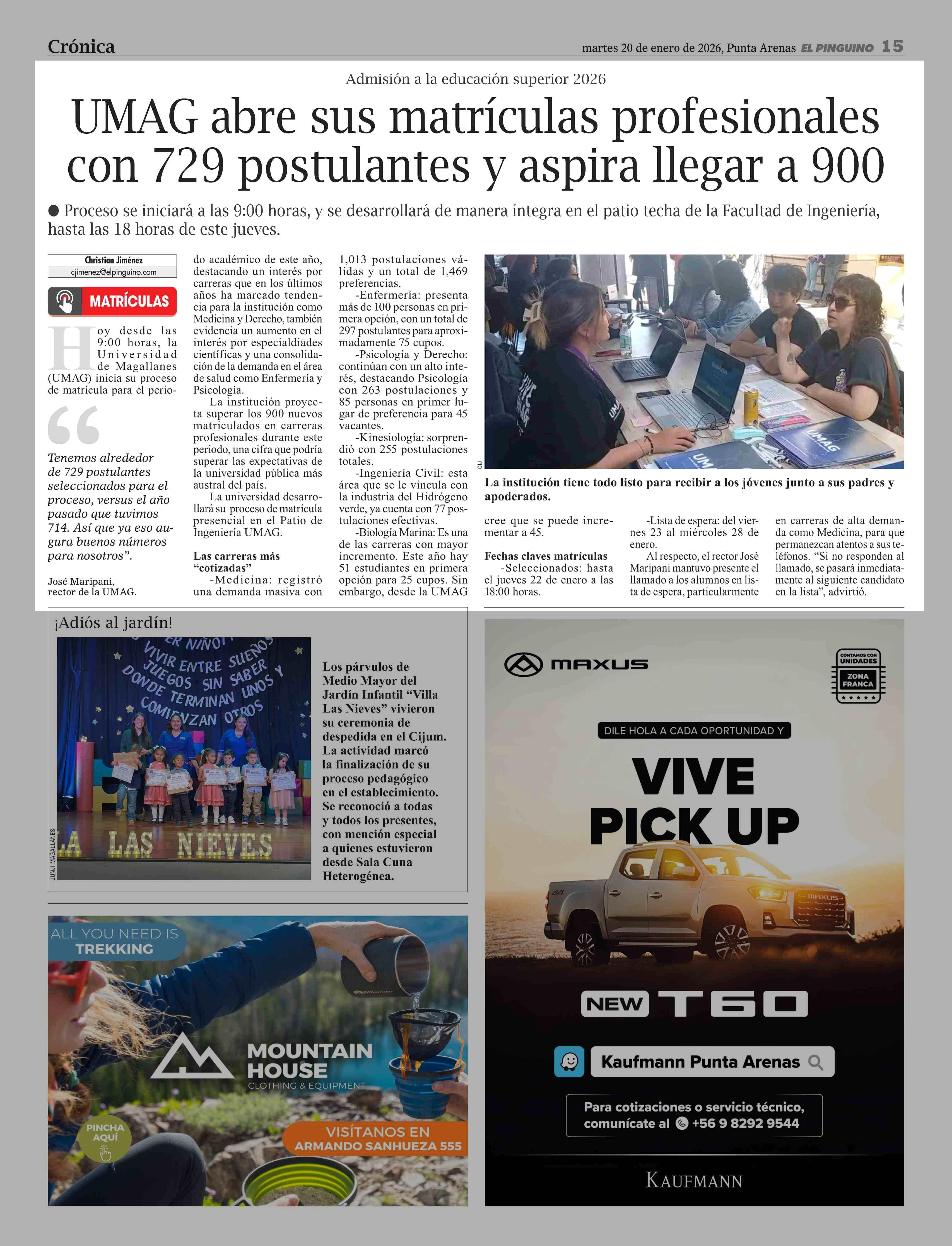 Fecha: 20-01-2026 Sector: Noticia general Región: Región de Magallanes y de la Antártica Chilena