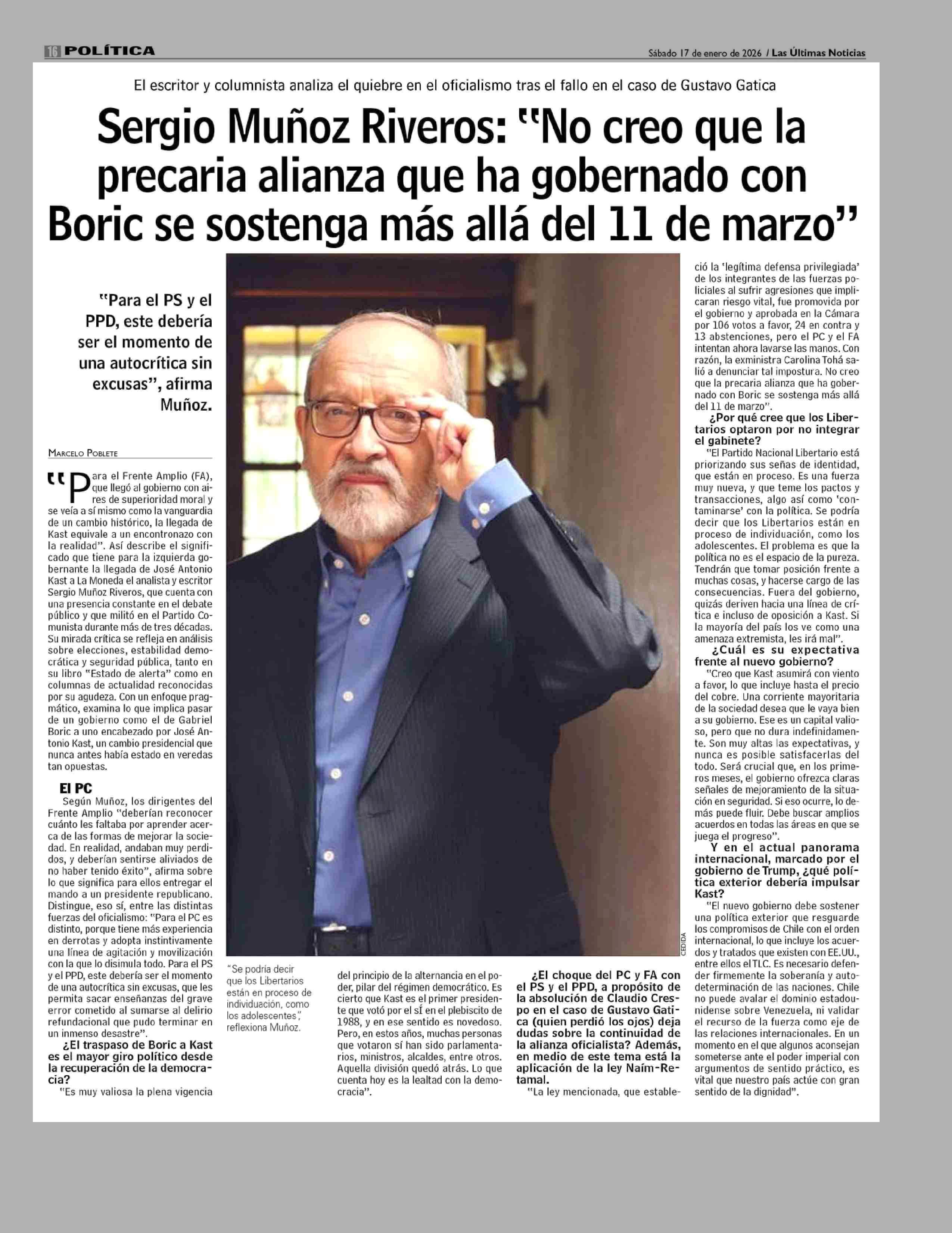 Título: Sergio Muñoz Riveros: "No creo que la precaria alianza que ha gobernado con Boric se sostenga mas alla del 11 de marzo"