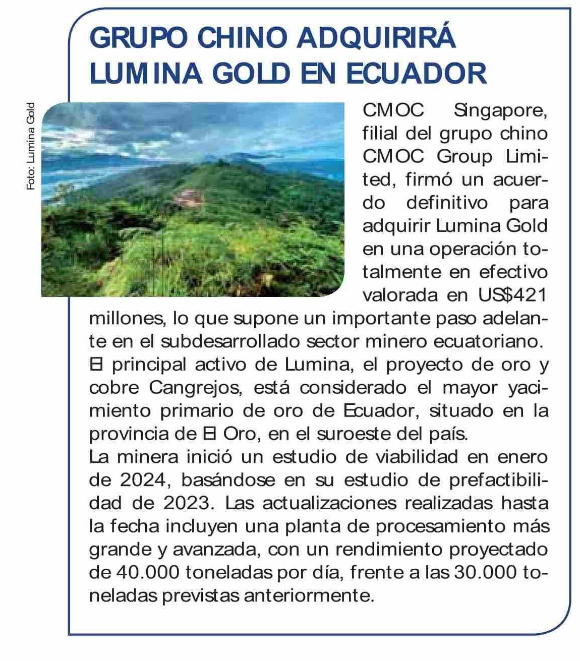 GRUPO CHINO ADQUIRIRÁ LUMINA GOLD EN ECUADOR