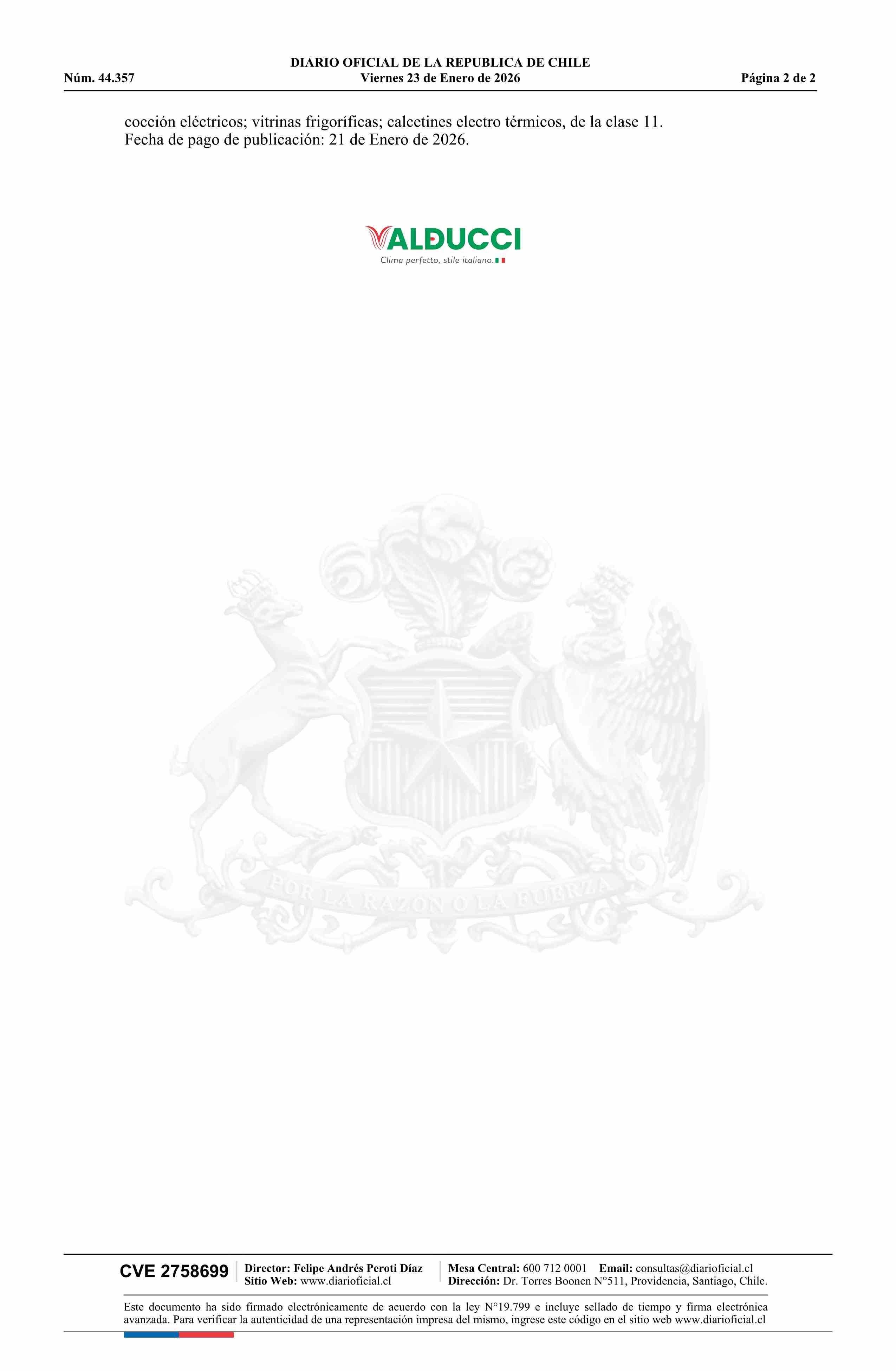 Solicitud número 1639518.- Valducci clima perfetto, stile italiano 23-01-2026 Diario Oficial Edición Electrónica |