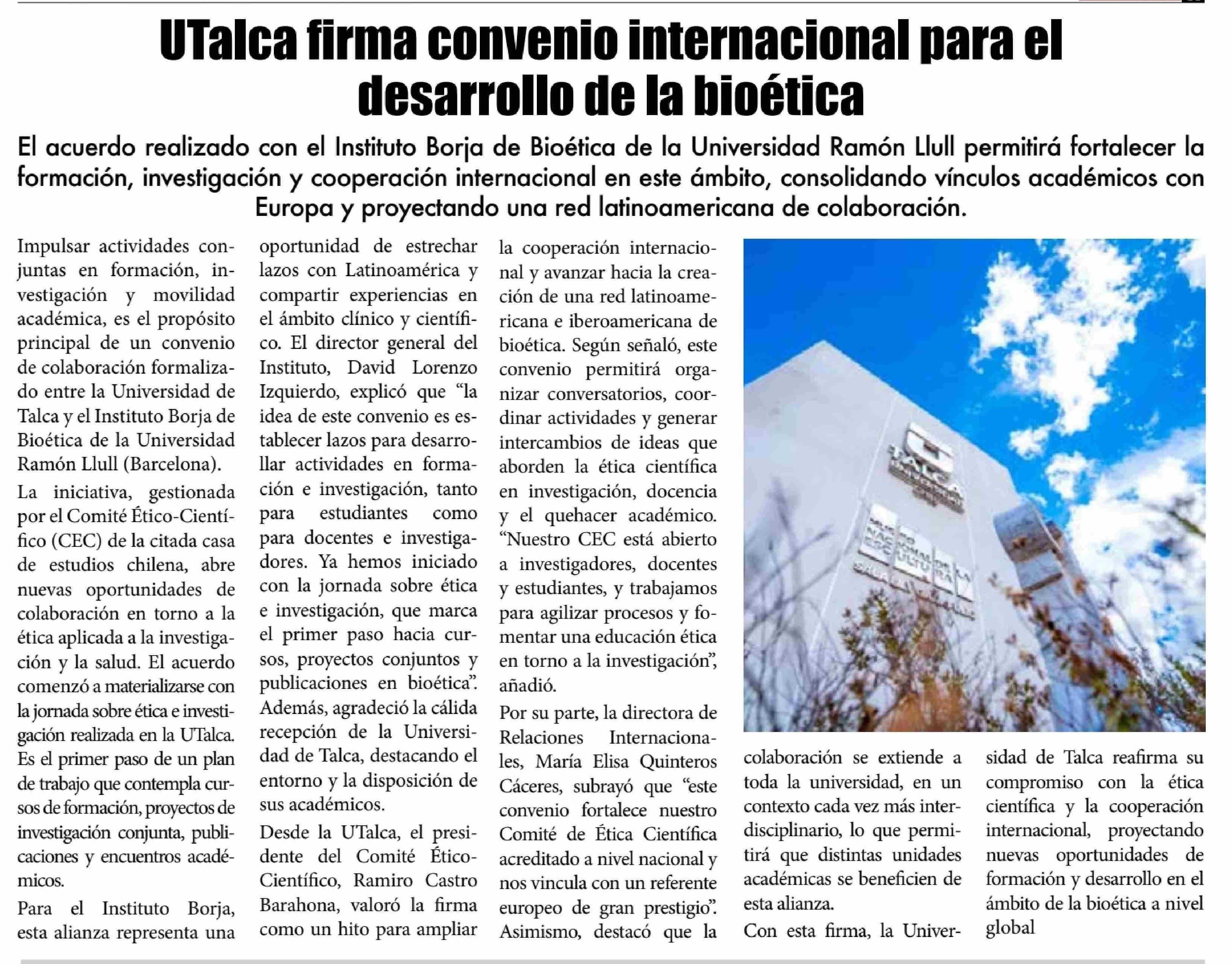 Título: UTalca firma convenio internacional para el desarrollo de la bioética