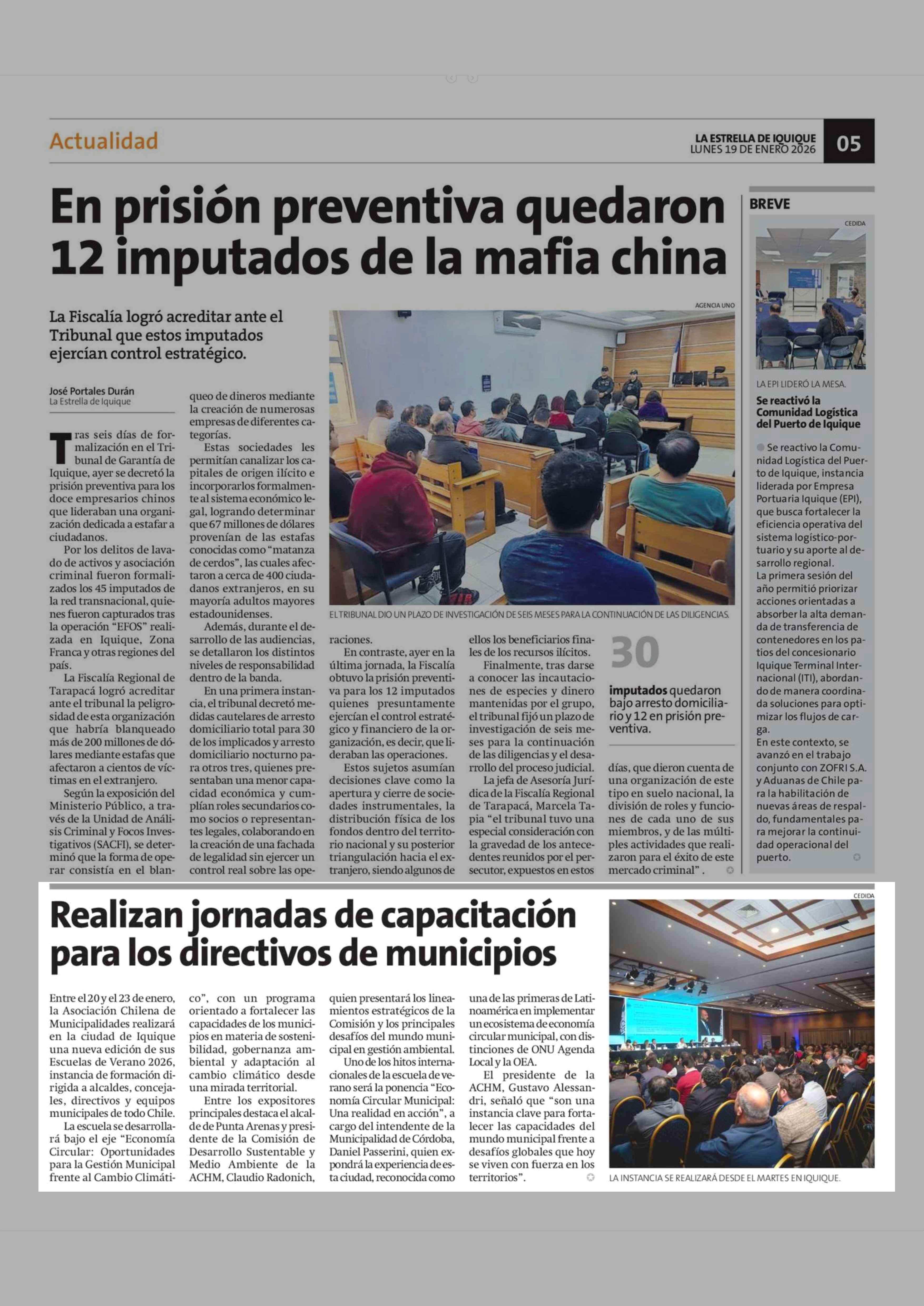 Realizan jornadas de capacitación para los directivos de municipios 19-01-2026 La Estrella de Iquique |