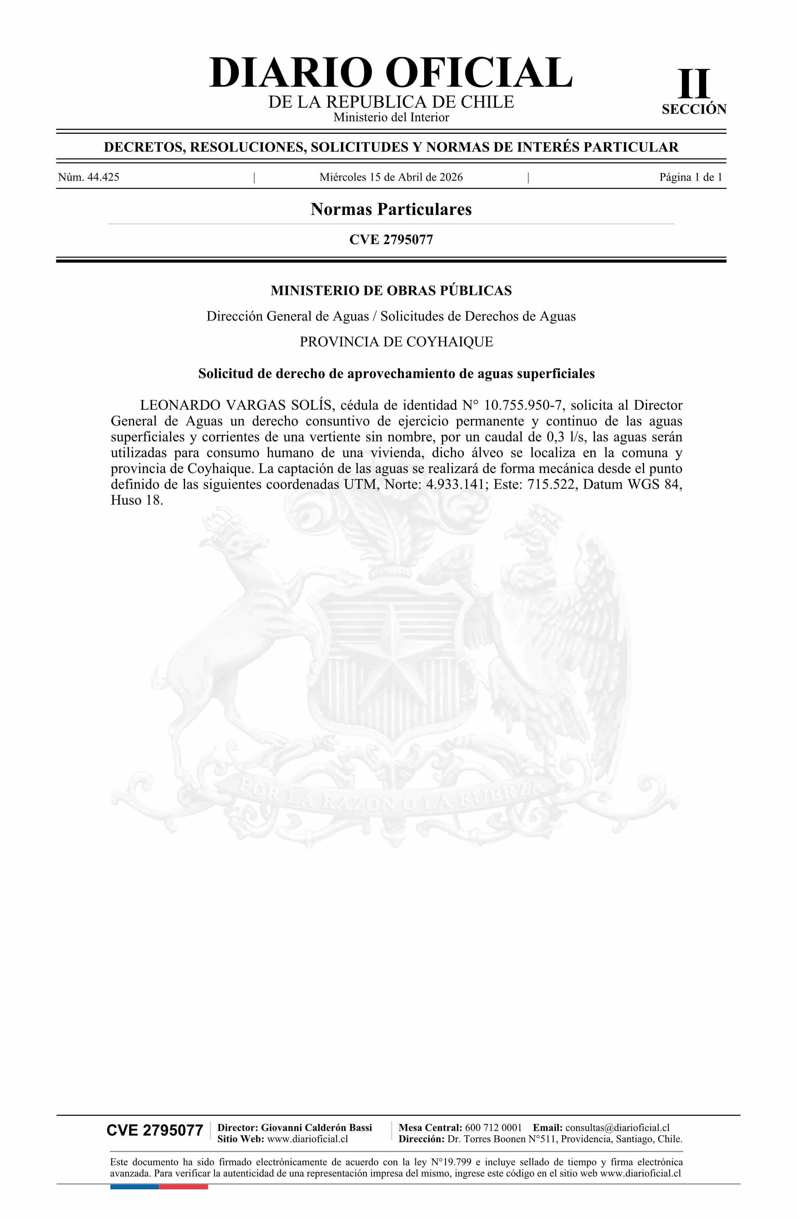 Solicitud Vargas Solís Leonardo 15-04-2026 Diario Oficial Edición Electrónica |