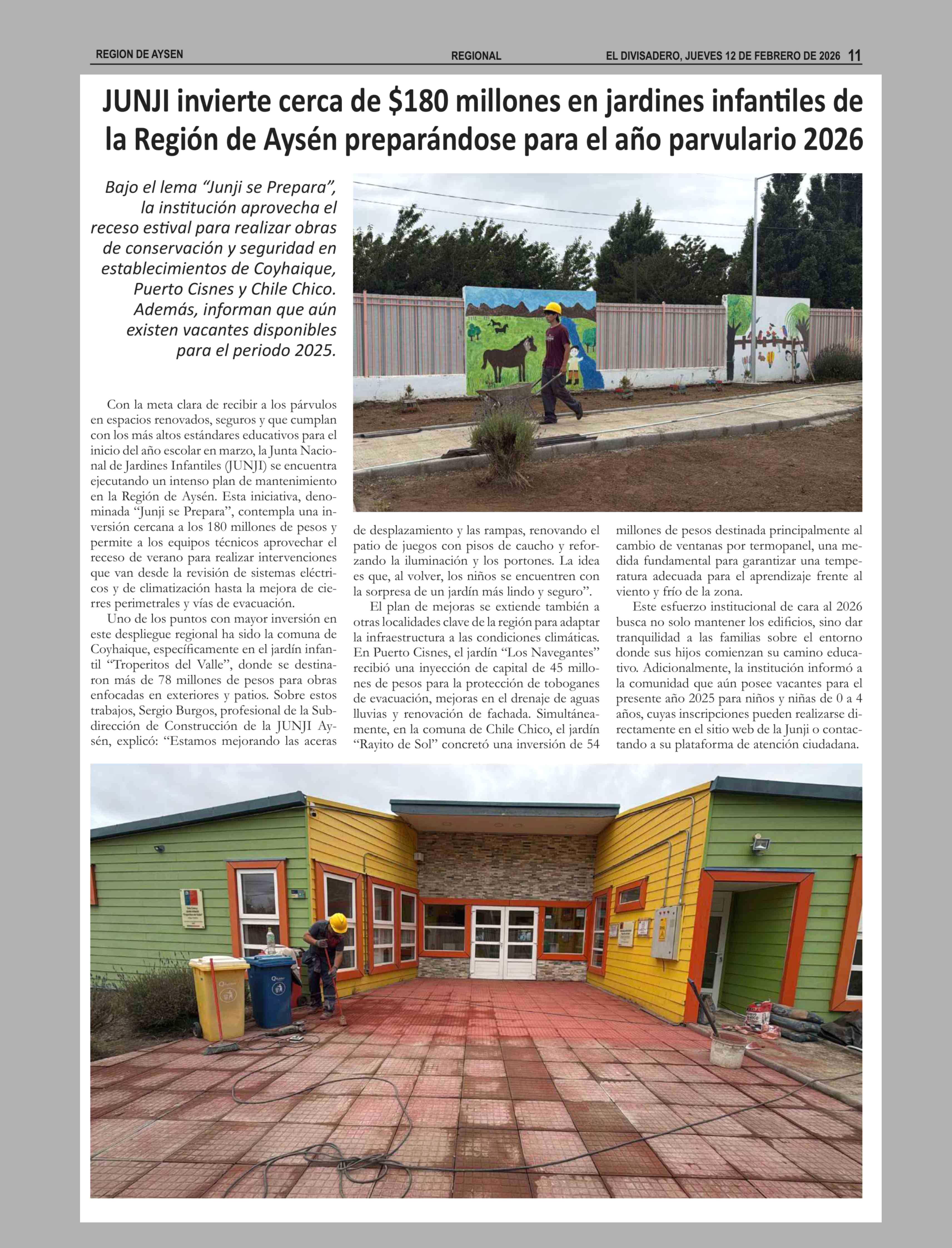JUNJI invierte cerca de $180 millones en jardines infantiles de la Región de Aysén preparándose para el año parvulario 2026 12-02-2026 El Divisadero |