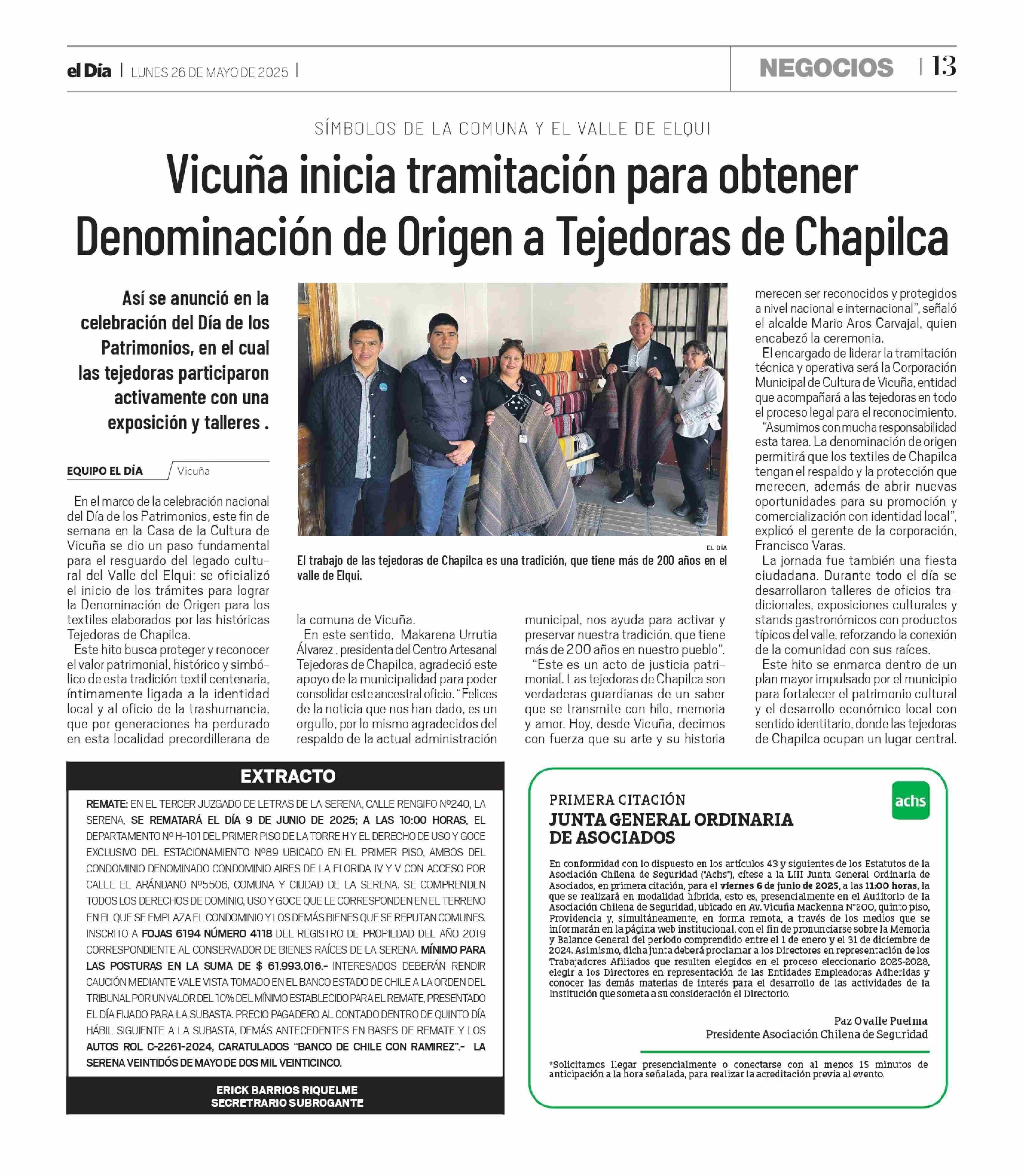 EXTRACTOS: ASOCIACIÓN CHILENA DE SEGURIDAD 26-05-2025 El Día |