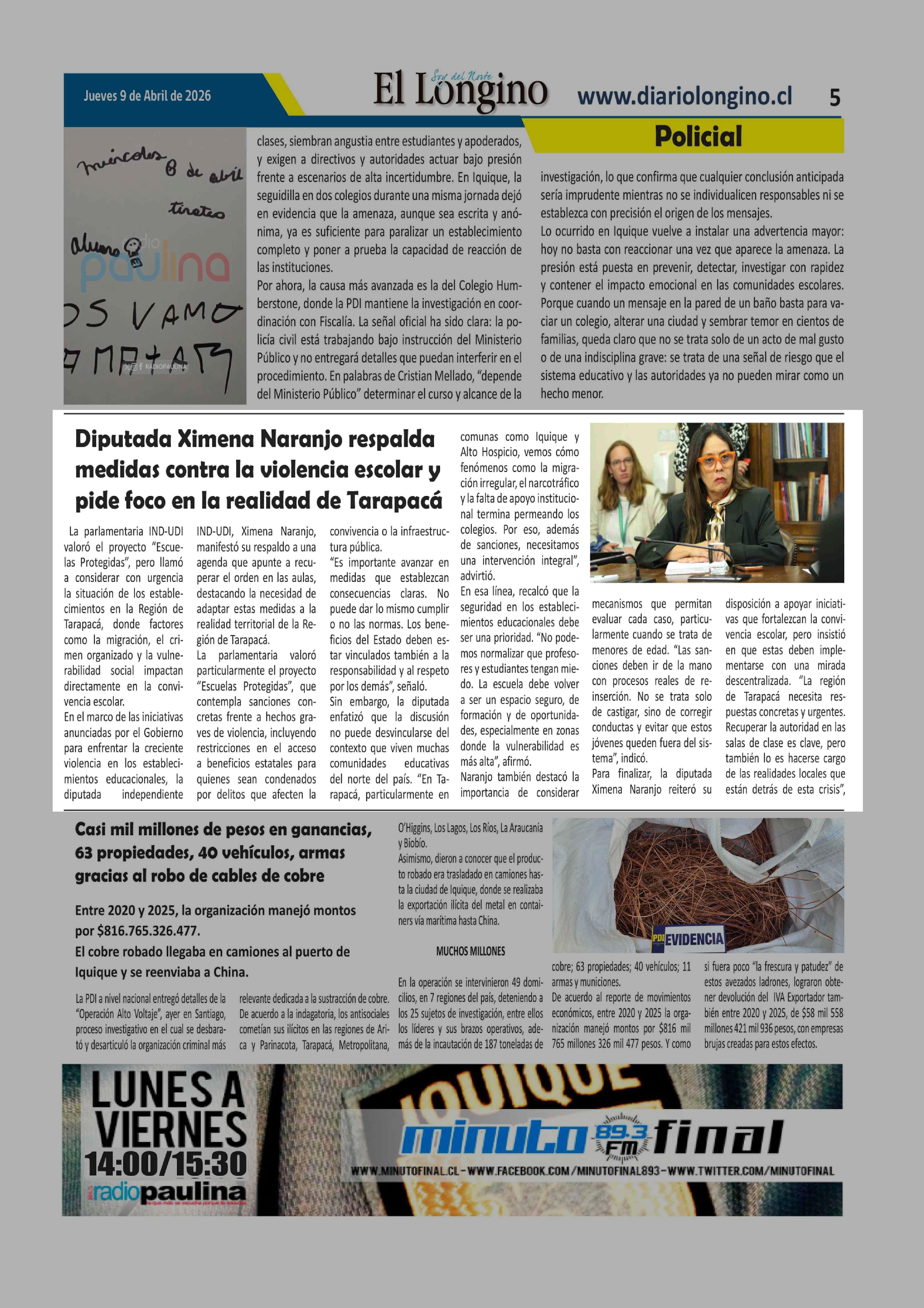 Diputada Ximena Naranjo respalda medidas contra la violencia escolar y pide foco en la realidad de Tarapacá 09-04-2026 El Longino |