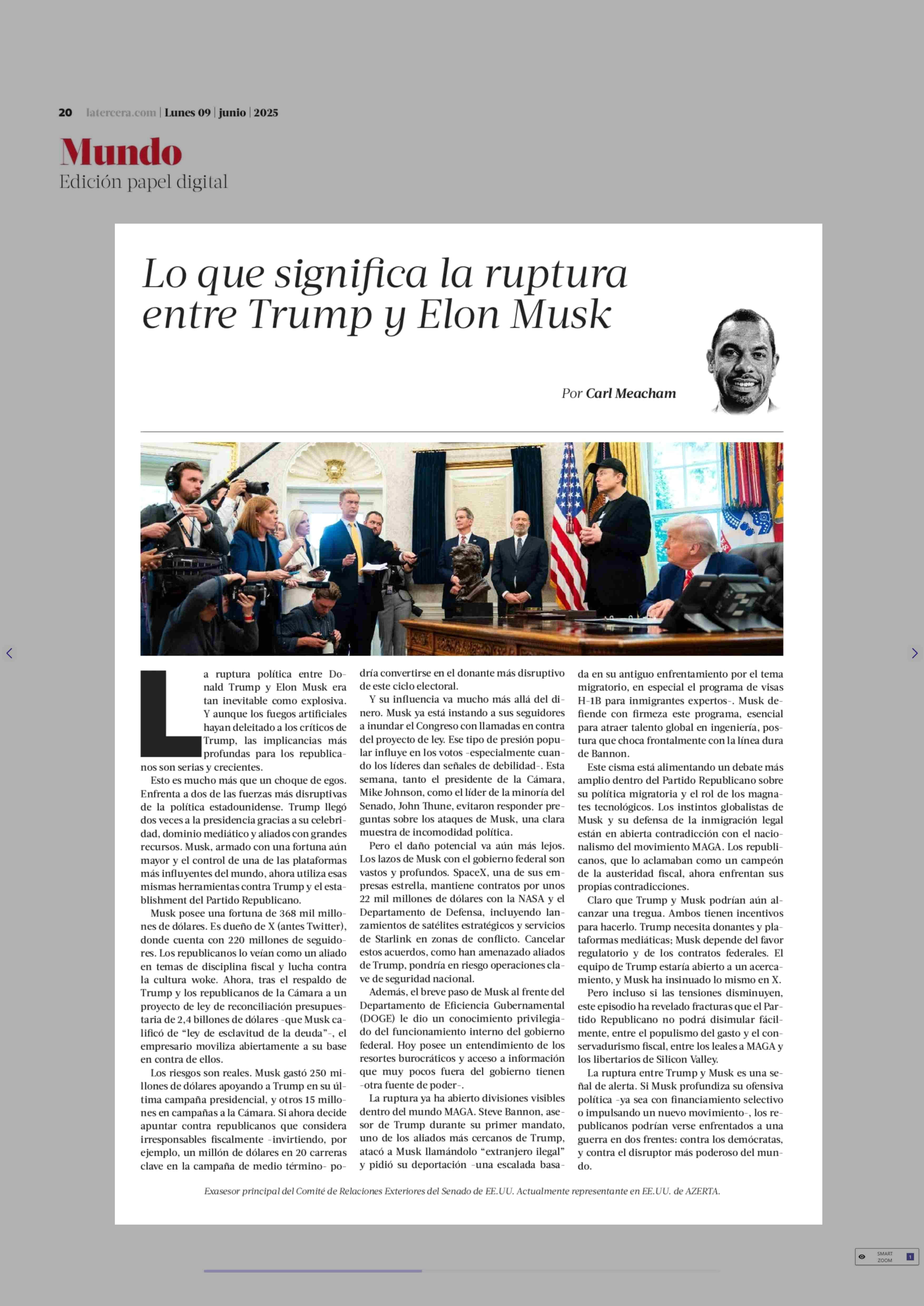 Lo que significa la ruptura entre Trump y Elon Musk 09-06-2025 La Tercera |
