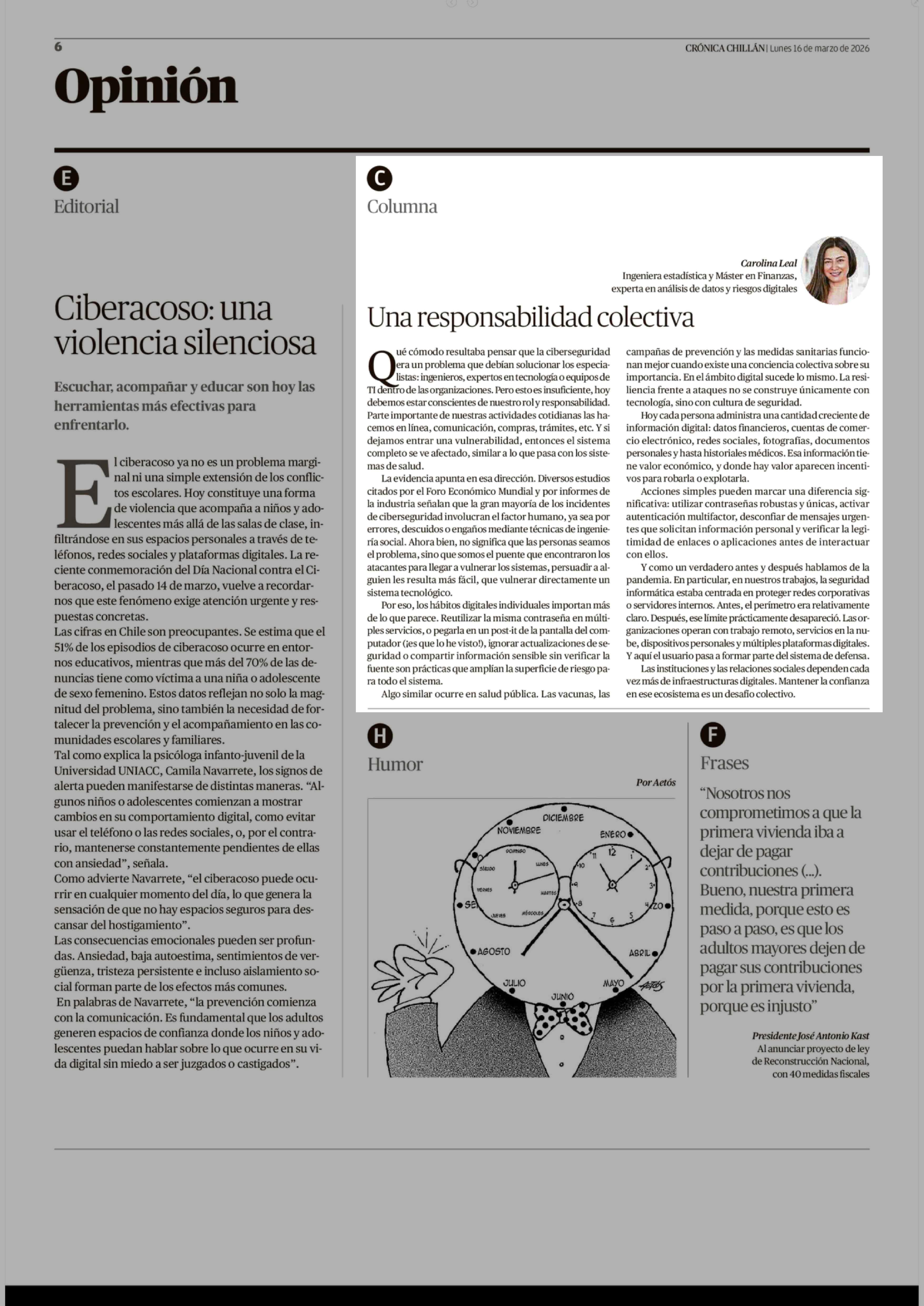 Fecha: 16-03-2026 Sector: Columnas de Opinión Región: Región del Ñuble