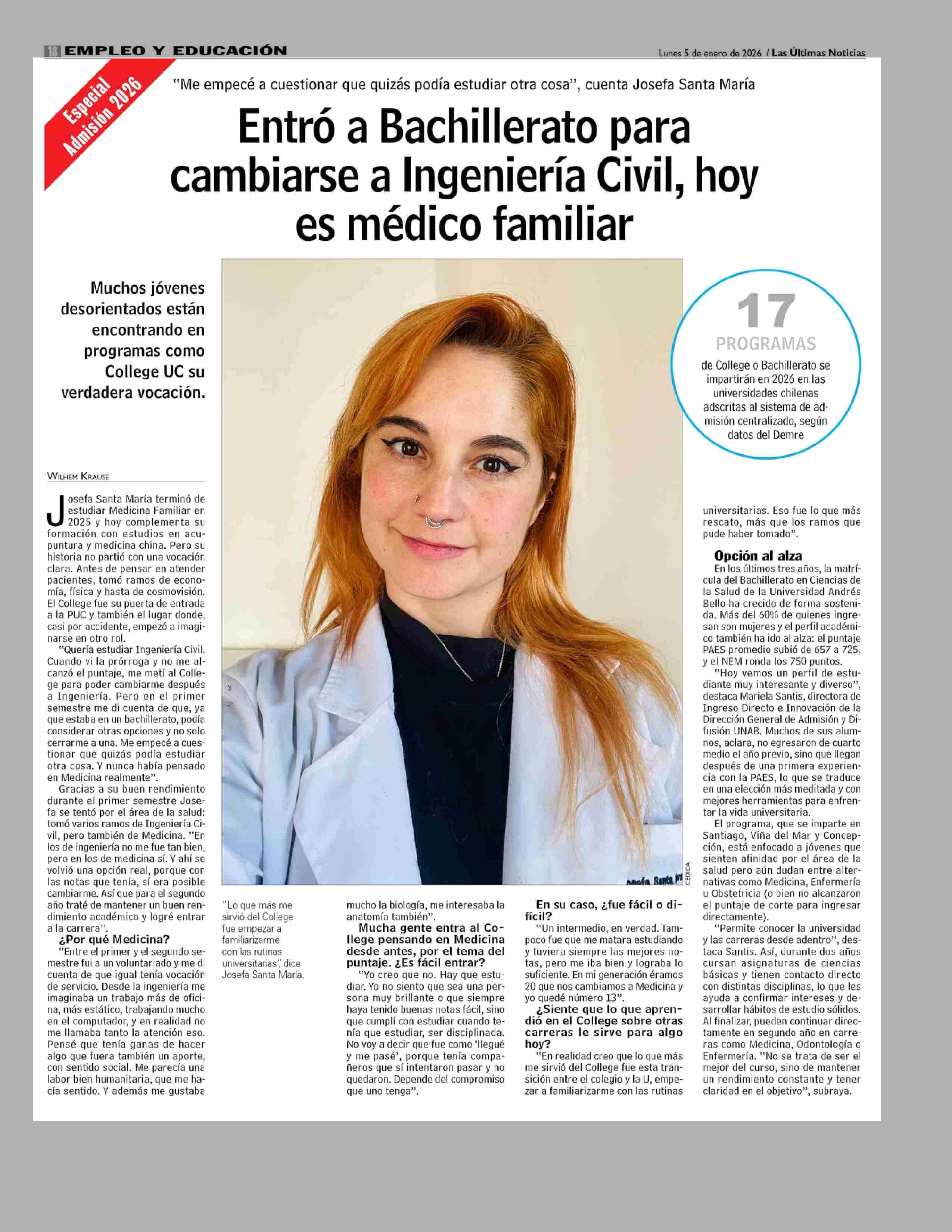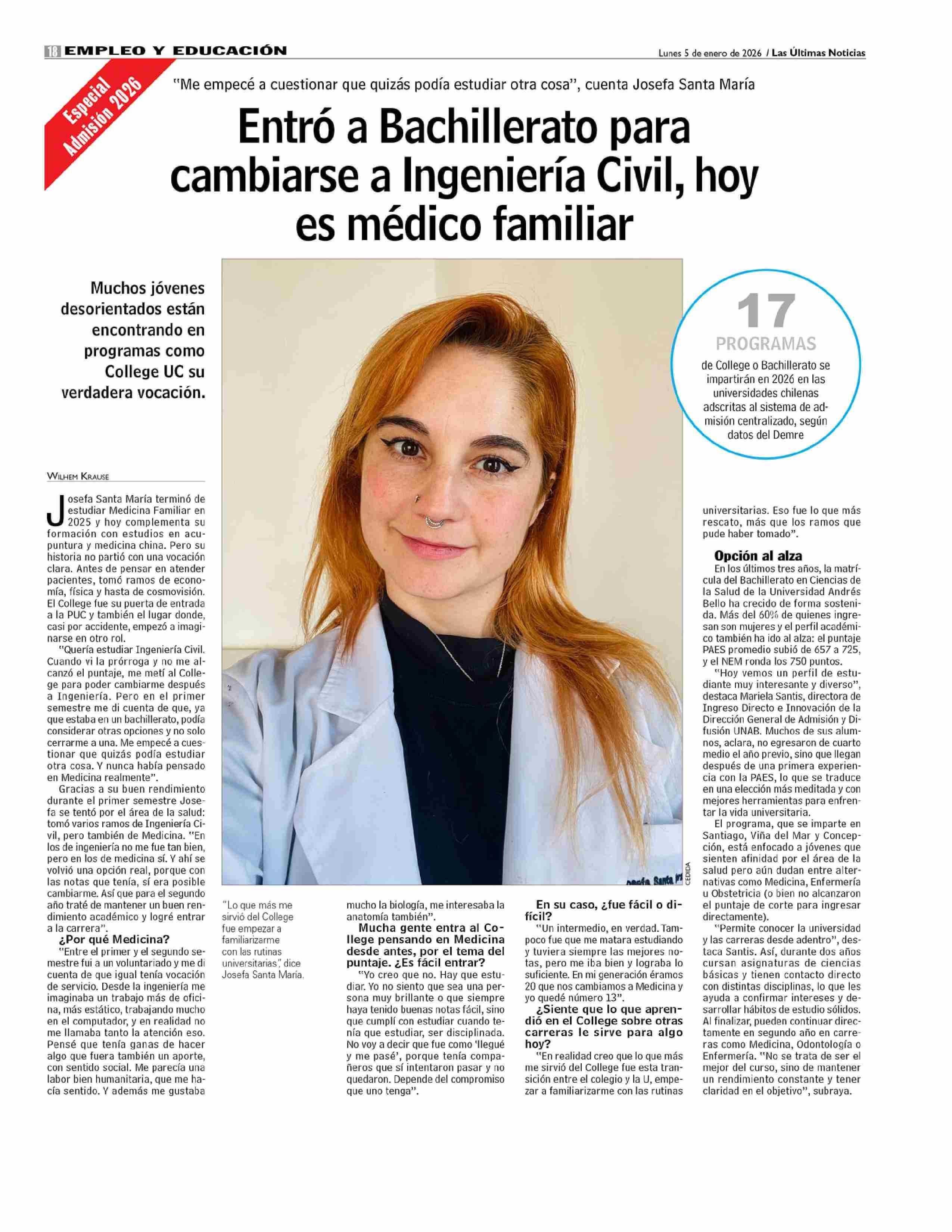 Entró a Bachillerato para cambiarse a Ingeniería Civil, hoy es médico familiar 05-01-2026 Las Últimas Noticias |