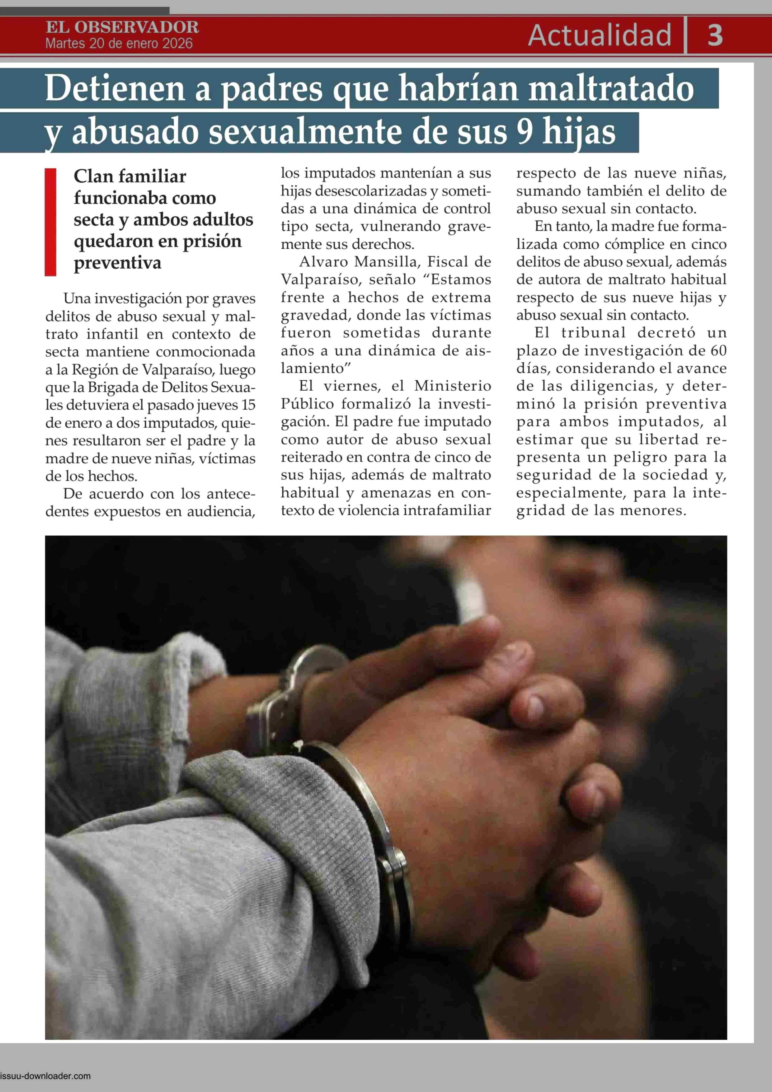 Título: _ Detienen a padres que habrian maltratado y abusado sexualmente de sus 9 hijas