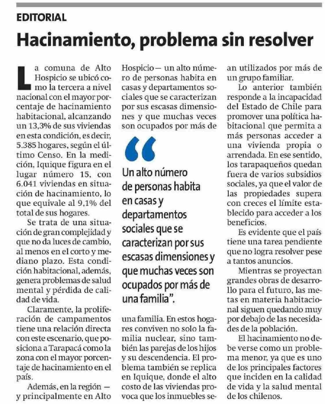 EDITORIAL: Hacinamiento, problema sin resolver 03-06-2025 La Estrella de Iquique |