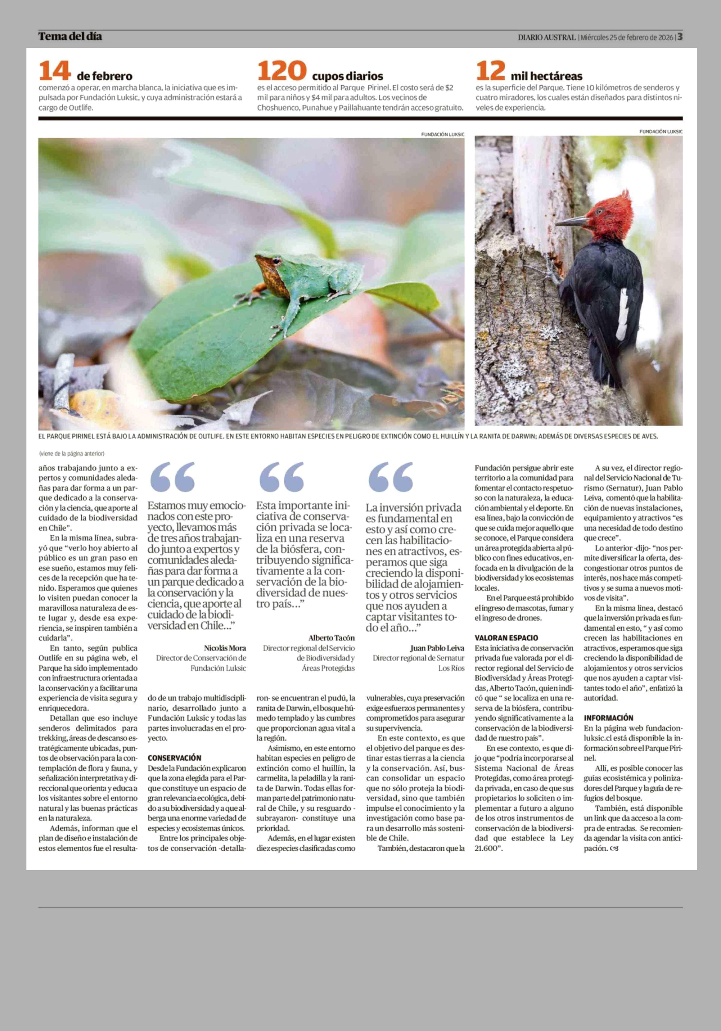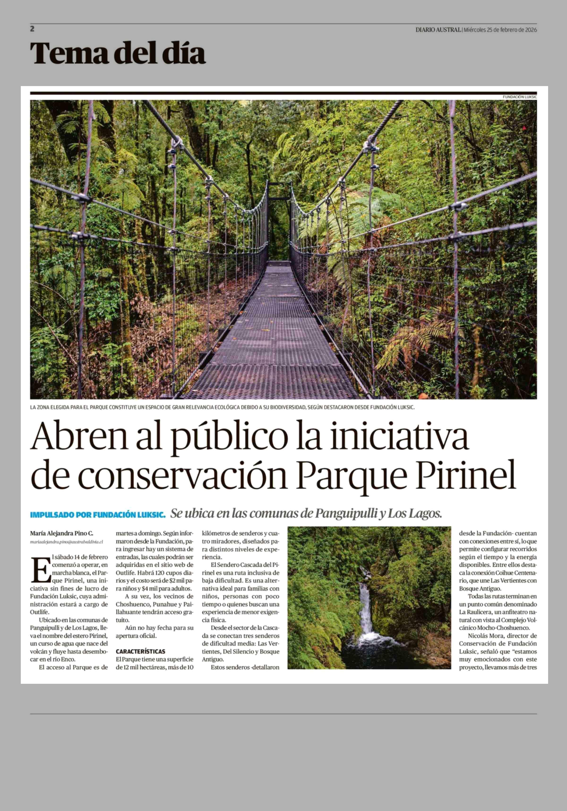 Abren al público la iniciativa de conservación Parque Pirinel 25-02-2026 Diario Austral Región de Los Ríos |