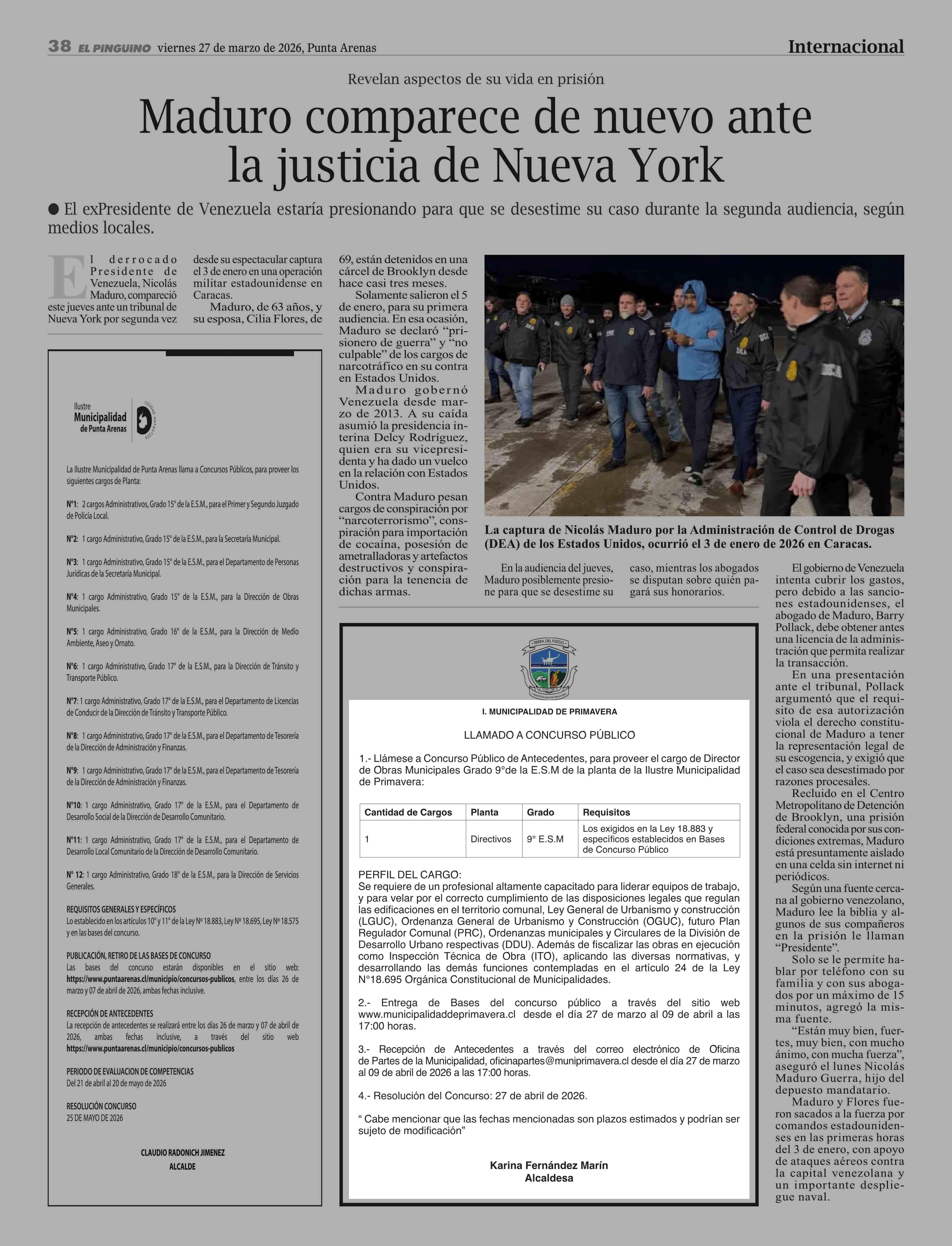 Aviso Licitaciones: LLAMADO A CONCURSO PÚBLICO 27-03-2026 El Pingüino |