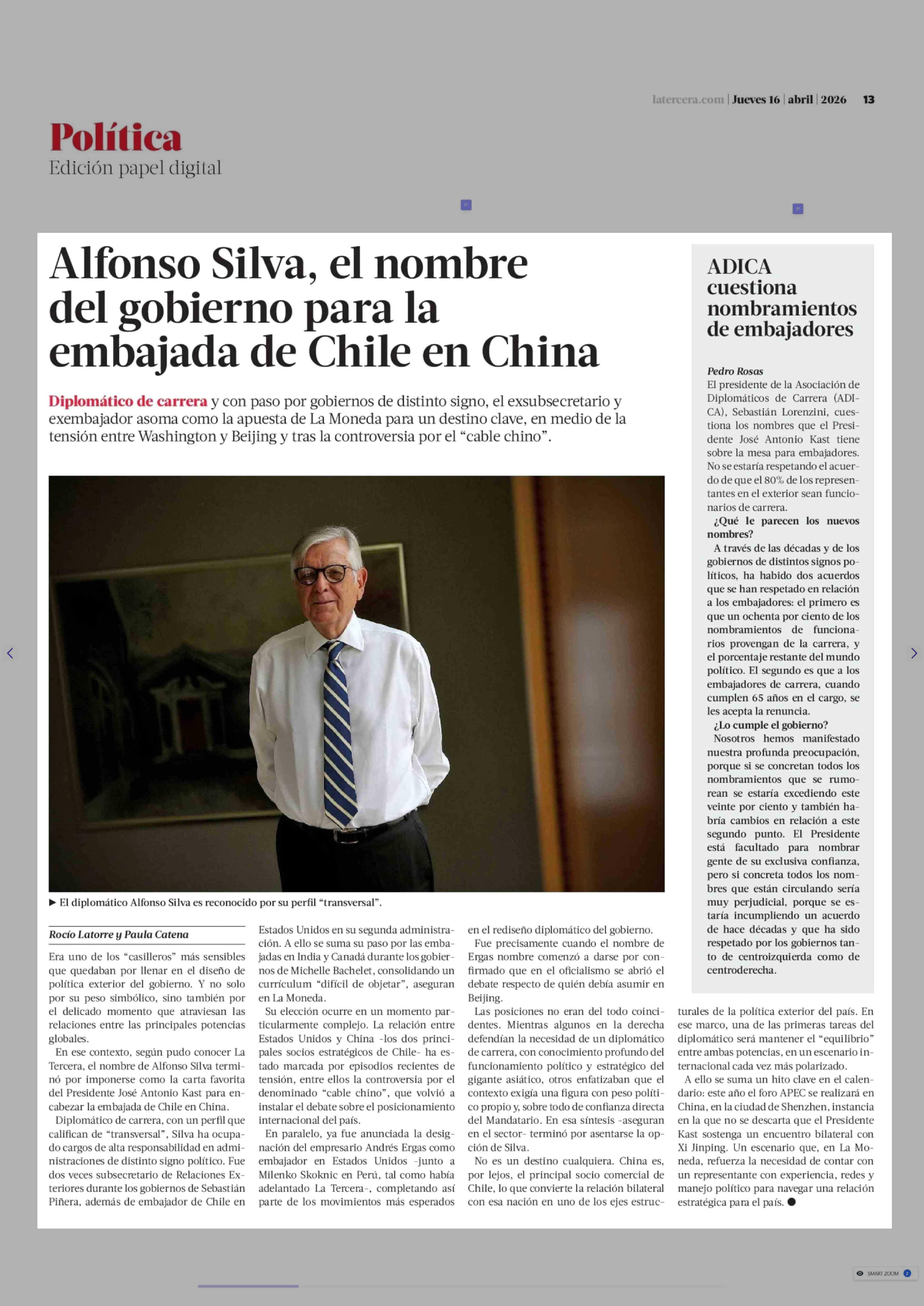 Título: Alfonso Silva, el nombre del gobierno para la embajada de Chile en China