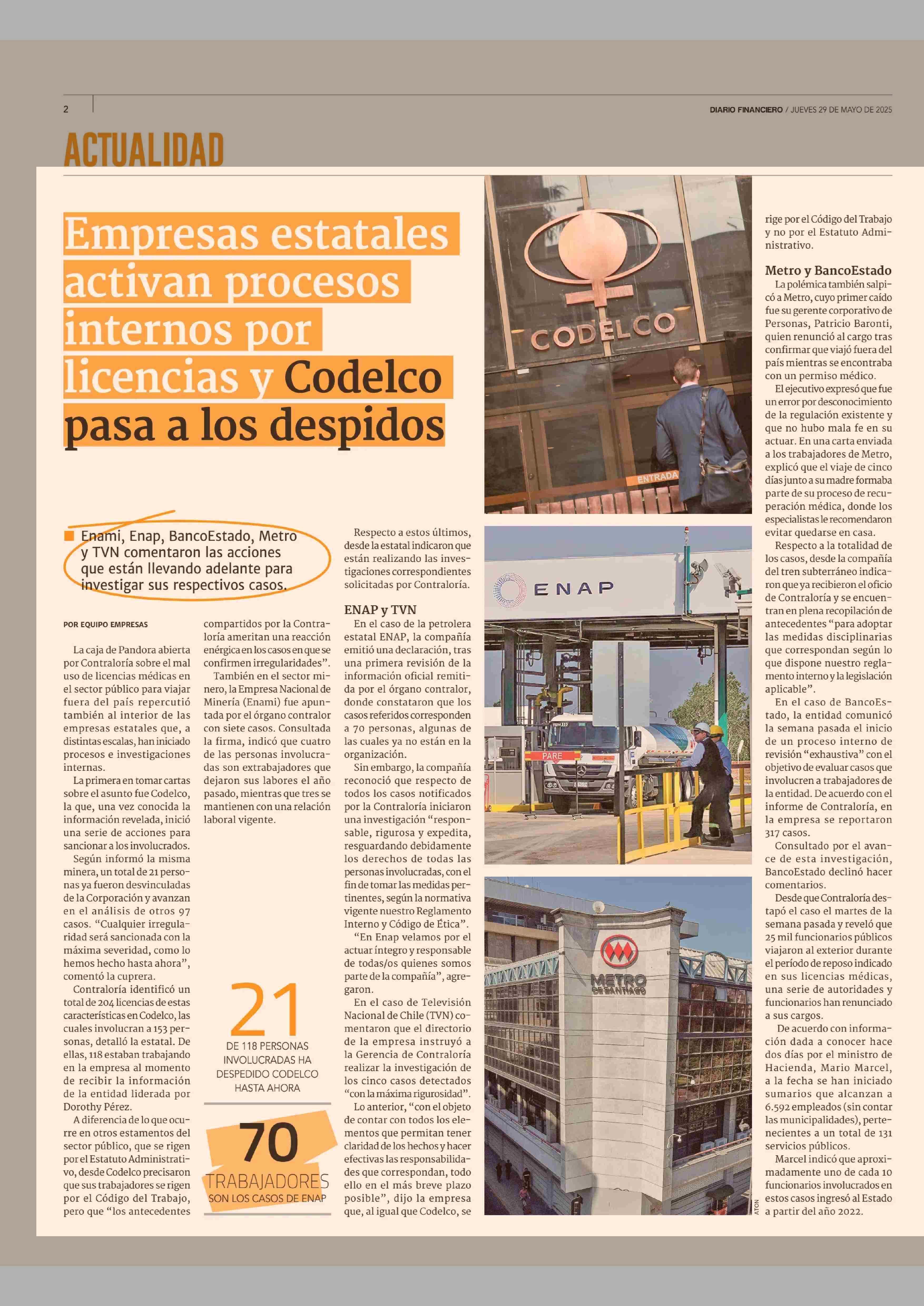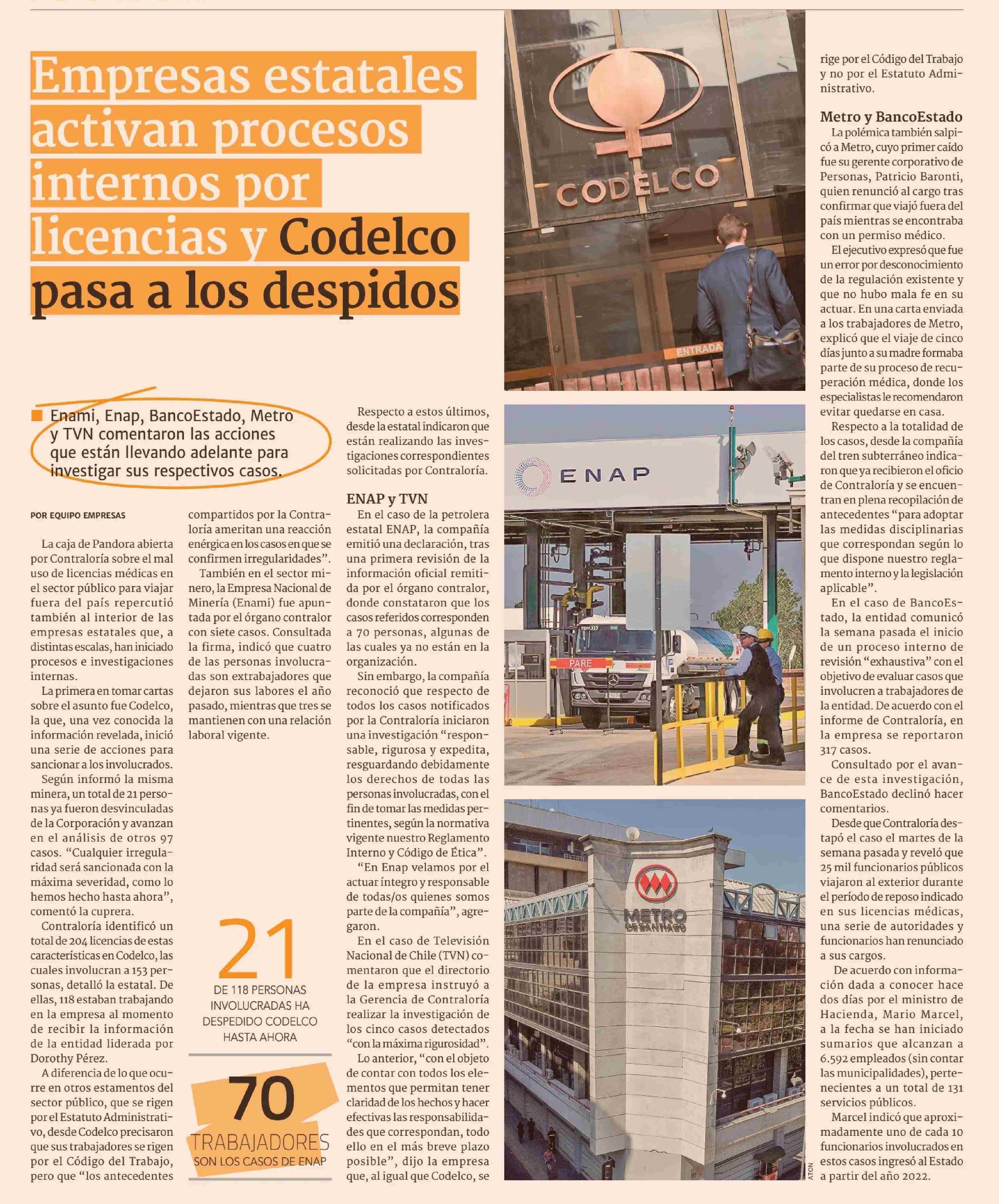 | Título: | Empresas estatales activan procesos internos por licencias médicas y Codelco pasa a los despidos |