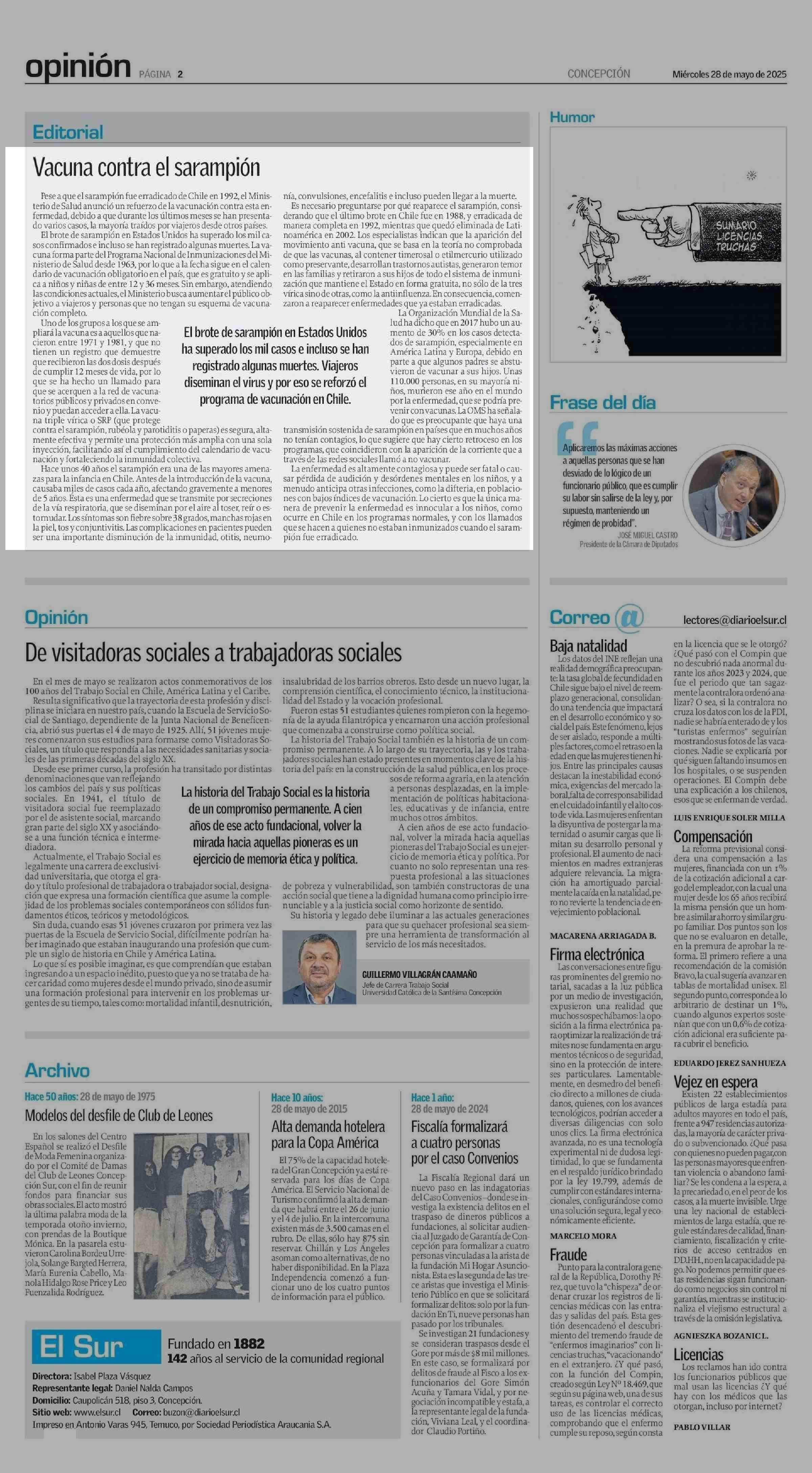 Vacuna contra el sarampión 28-05-2025 El Sur |