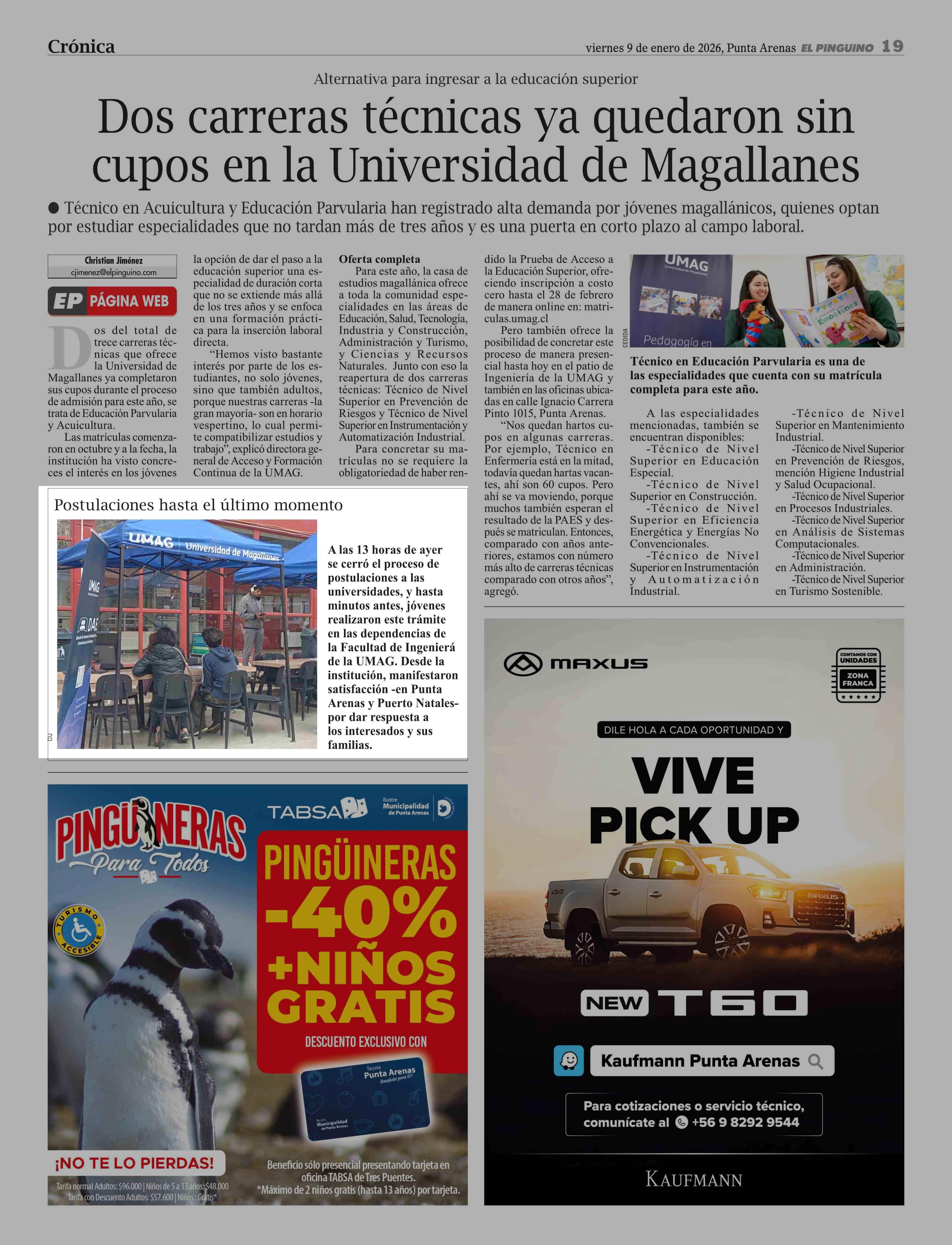 Postulaciones hasta el último momento 09-01-2026 El Pingüino |