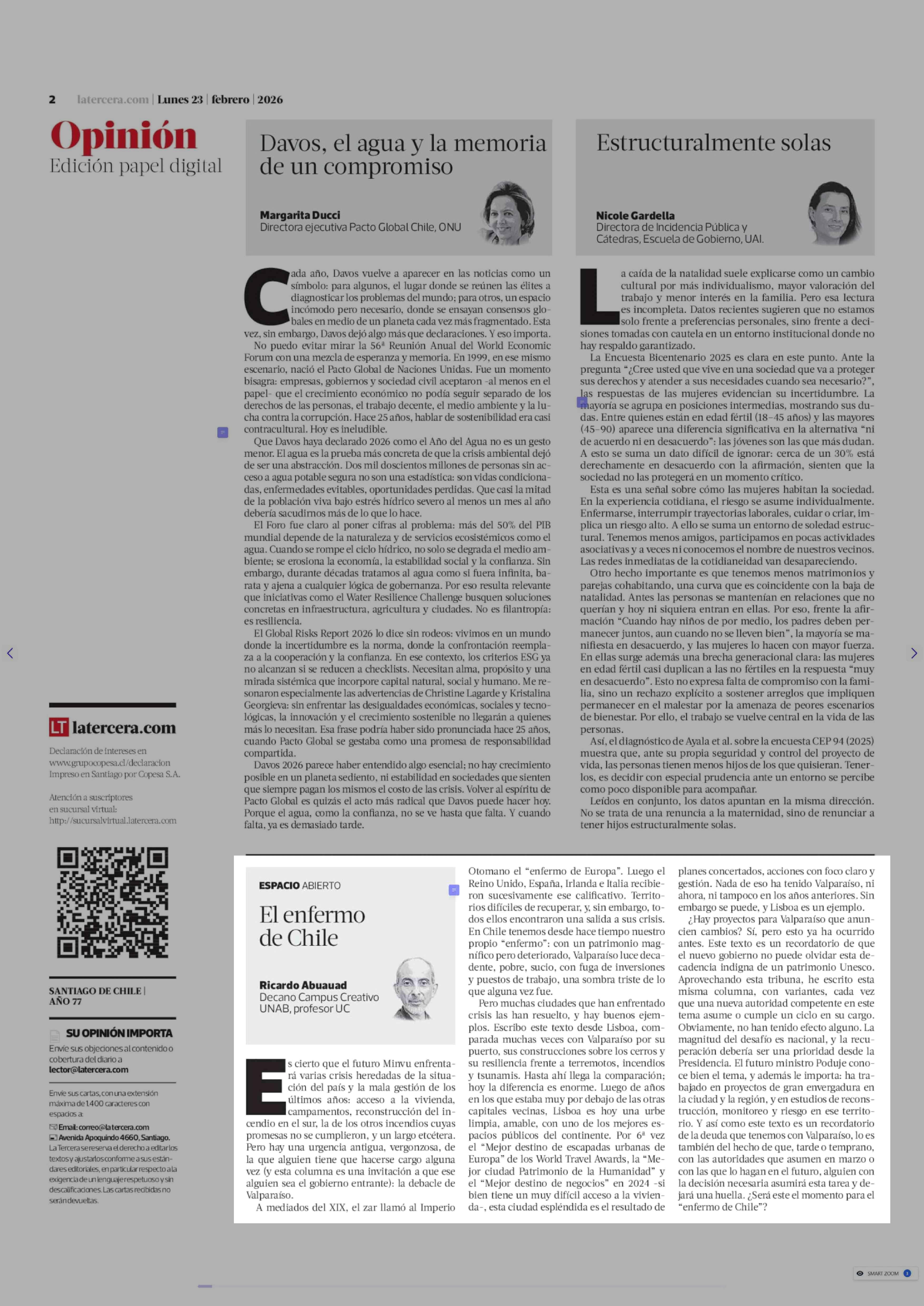 Columnas de Opinión: El enfermo de Chile 23-02-2026 La Tercera |
