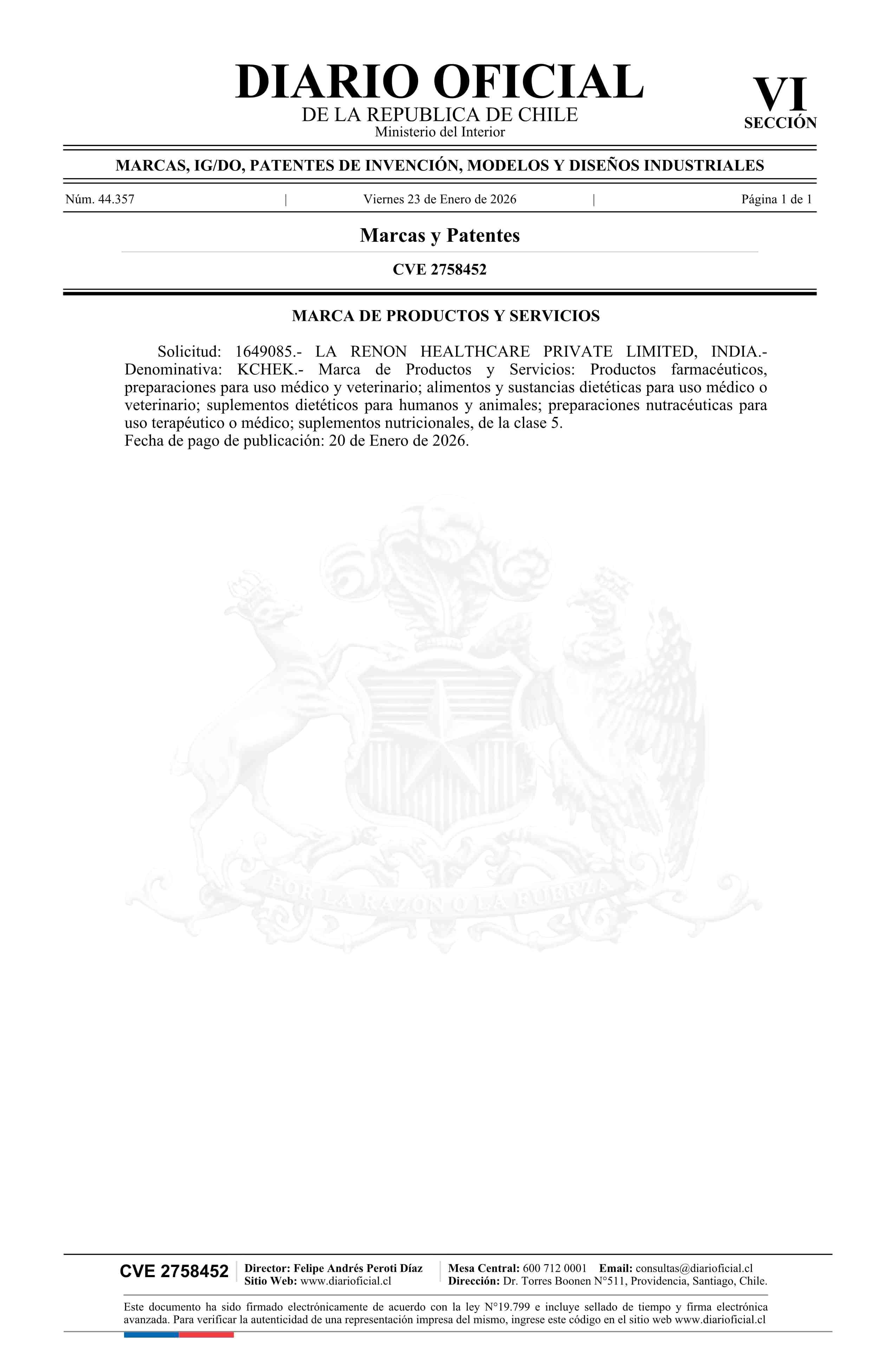 Solicitud número 1649085.- KCHEK 23-01-2026 Diario Oficial Edición Electrónica |