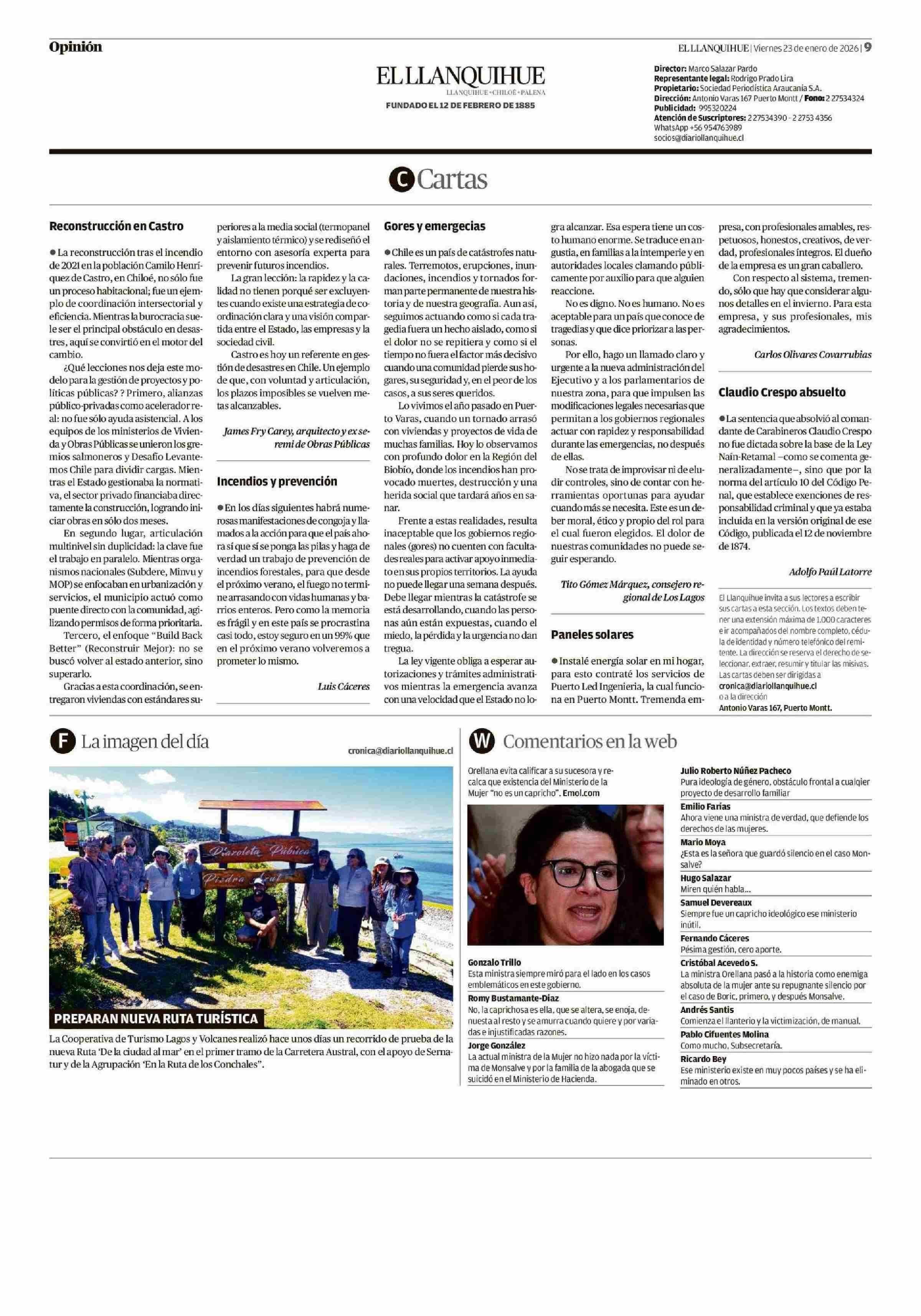 Cartas: Incendios y prevención 23-01-2026 El Llanquihue |