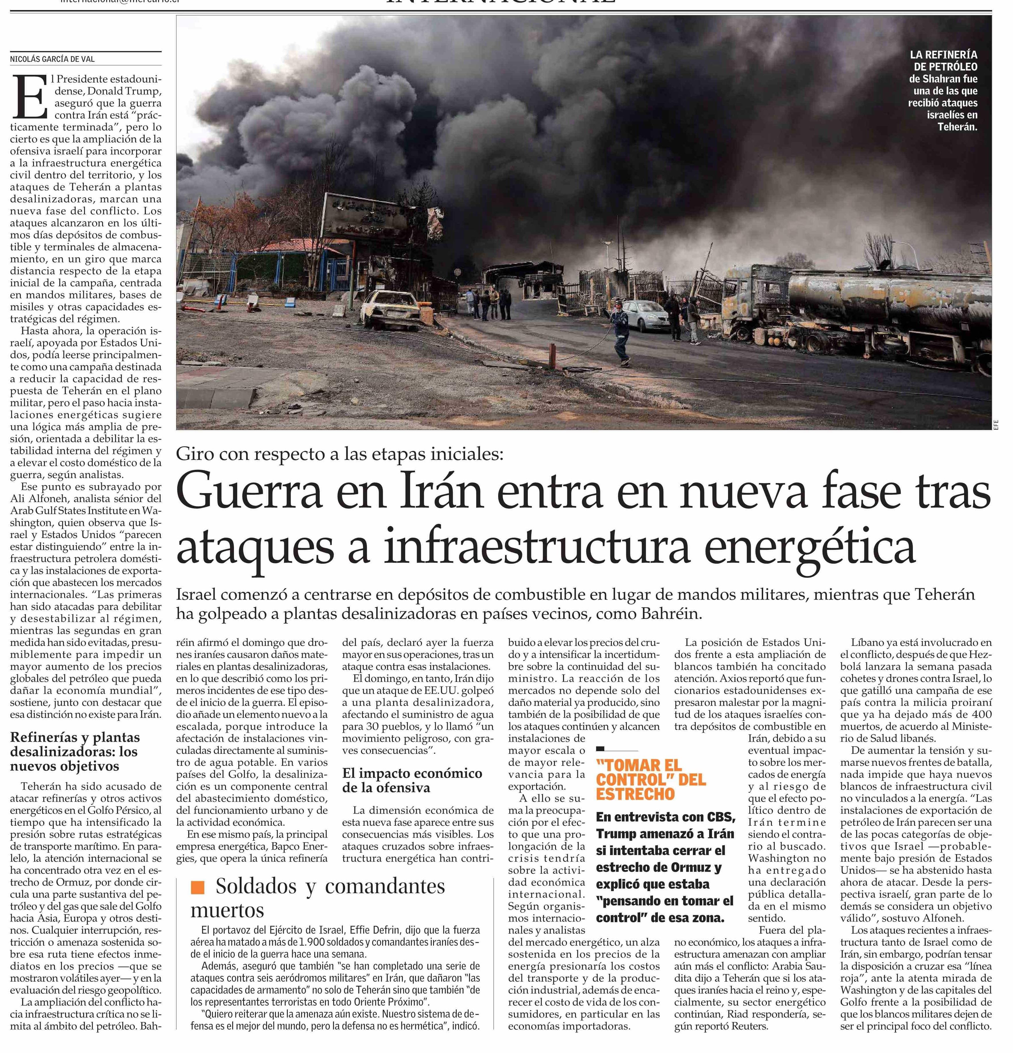 Guerra en Irán entra en nueva fase tras ataques a infraestructura energética 10-03-2026 El Mercurio |