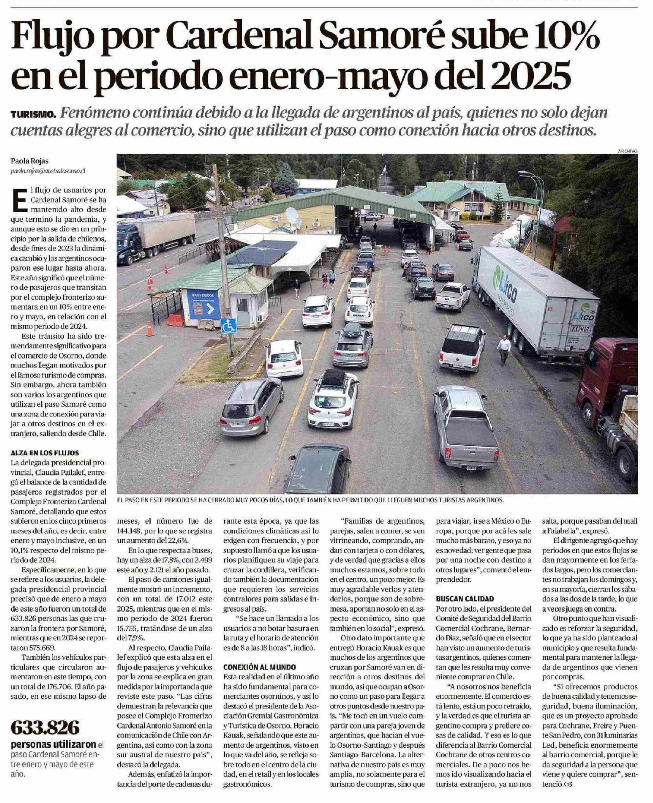 Título: Flujo por Cardenal Samoré sube 10% en el periodo enero-mayo del 2025