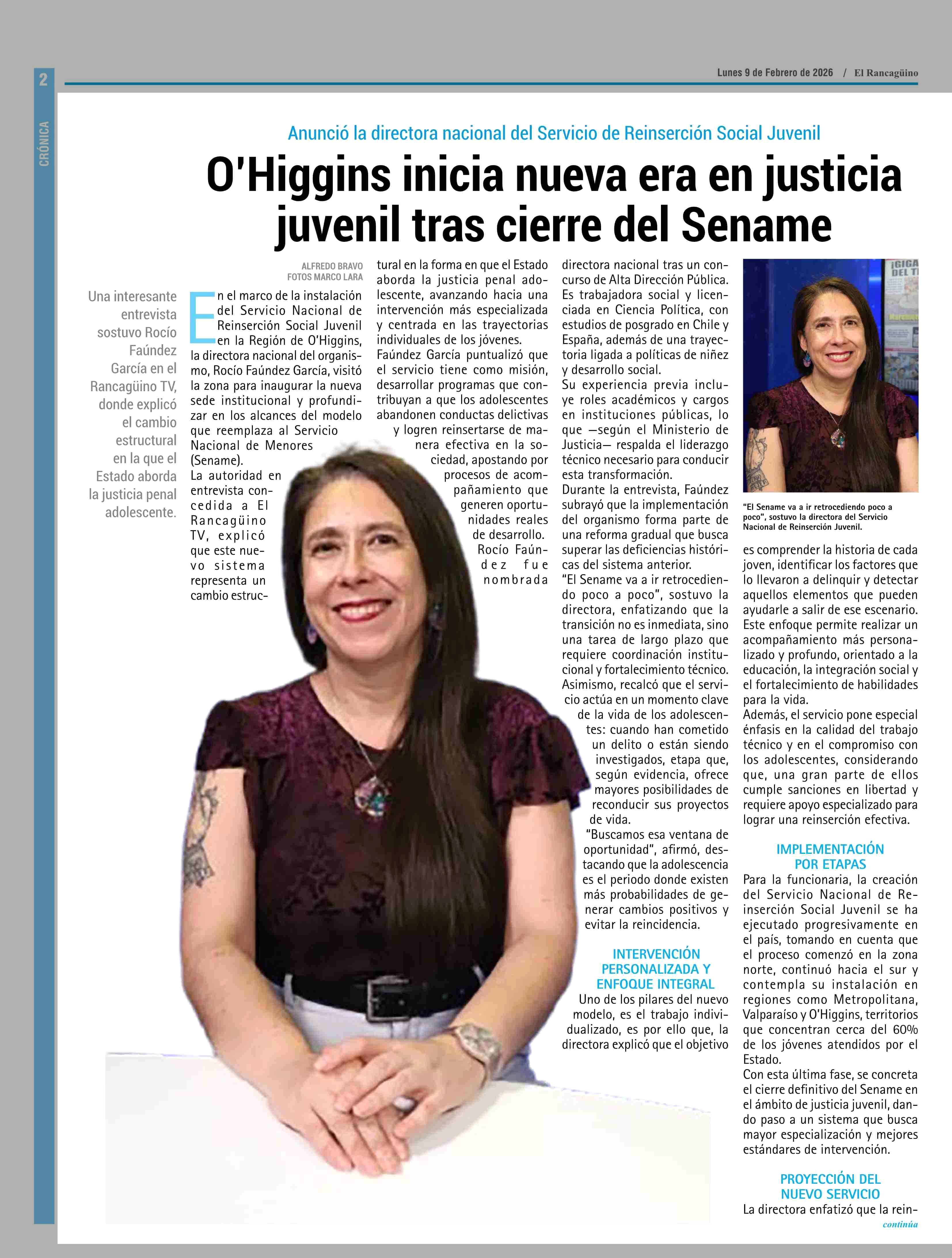 O'Higgins Inicia nueva era en justicia juvenil tras cierre del Sename 09-02-2026 El Rancagüino |