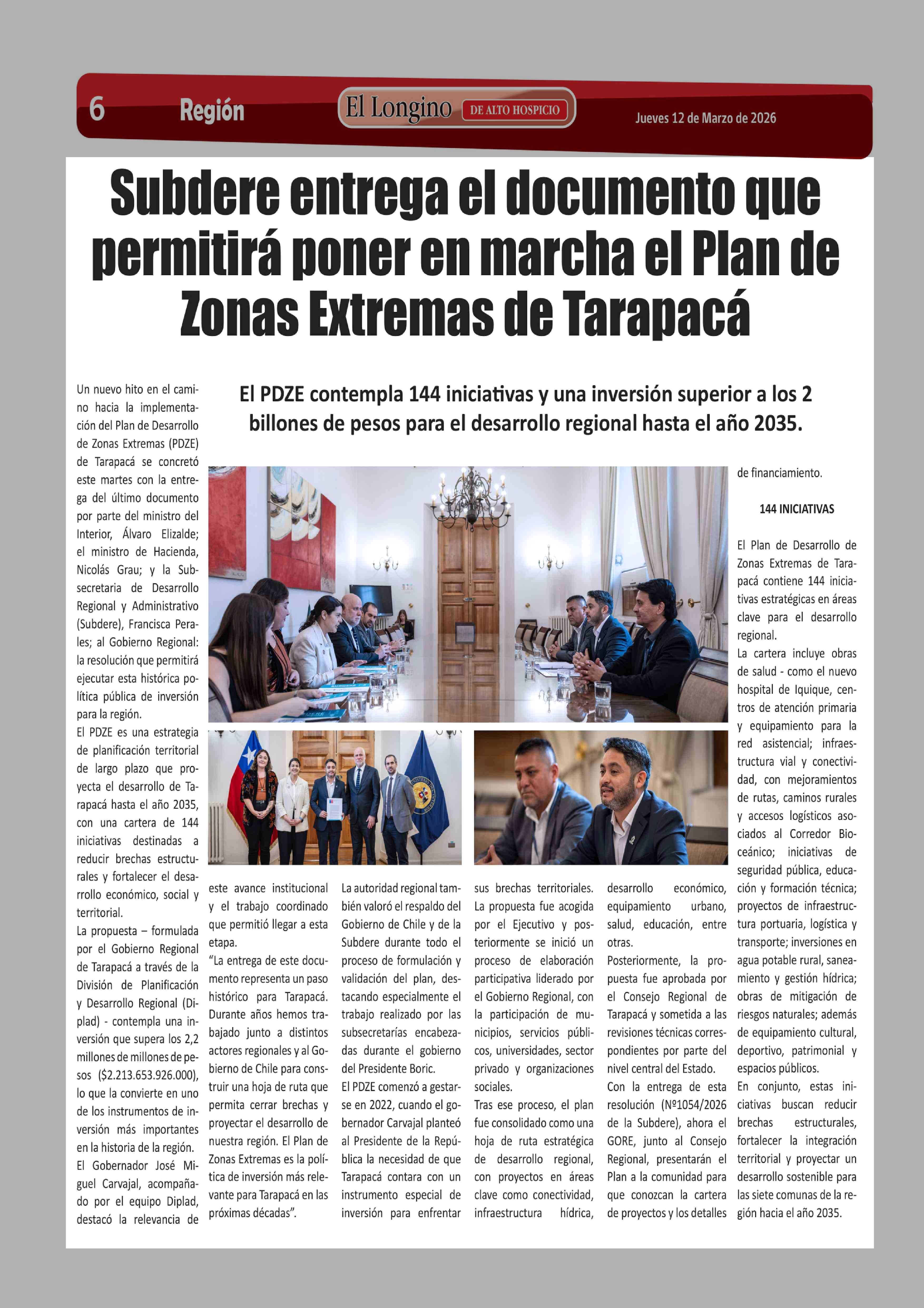 Subdere entrega el documento que permitirá poner en marcha el Plan de Zonas Extremas de Tarapacá 12-03-2026 El Longino |