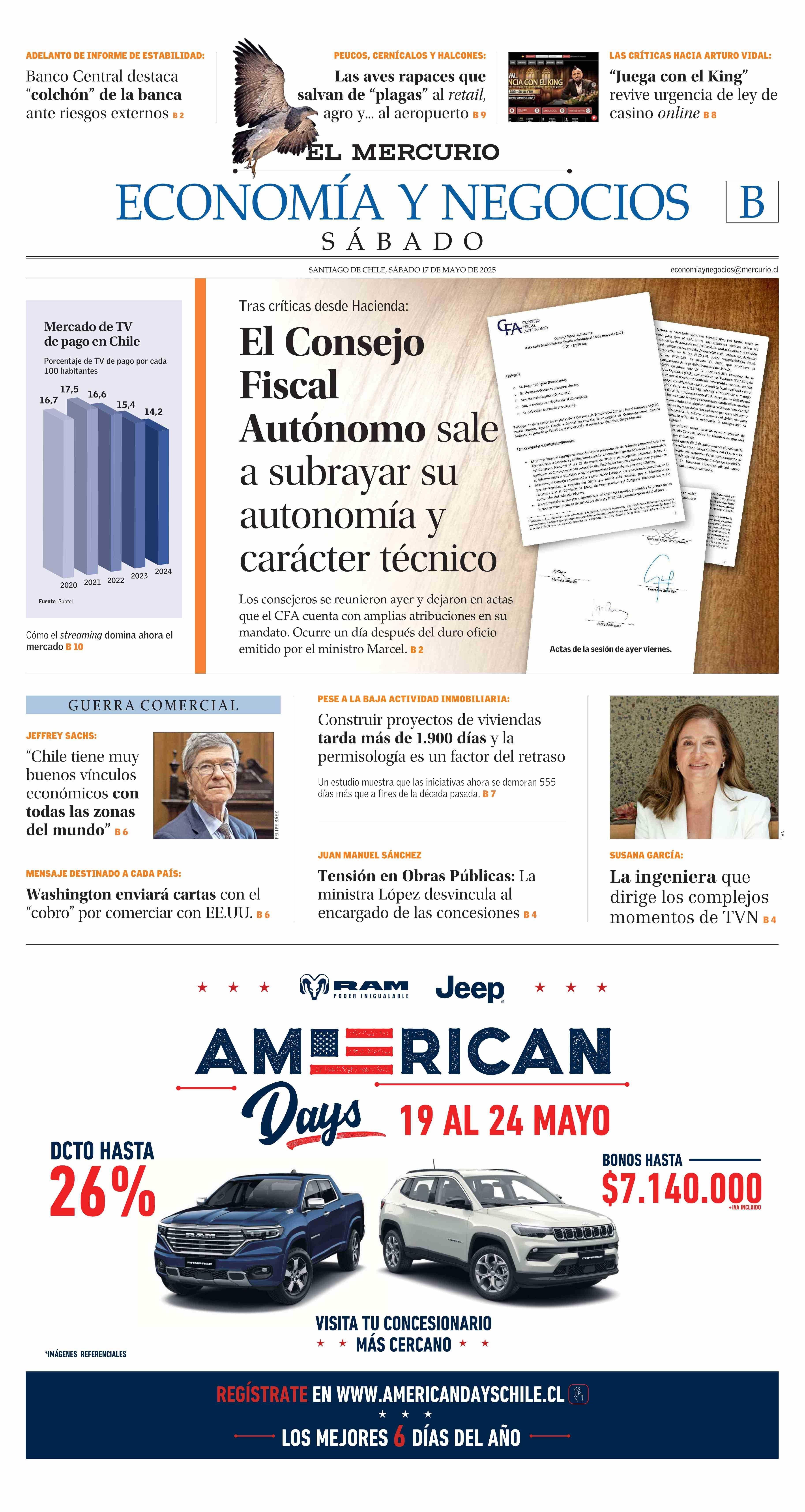 PORTADA EL MERCURIO (B) CHILE 17-05-2025 El Mercurio |