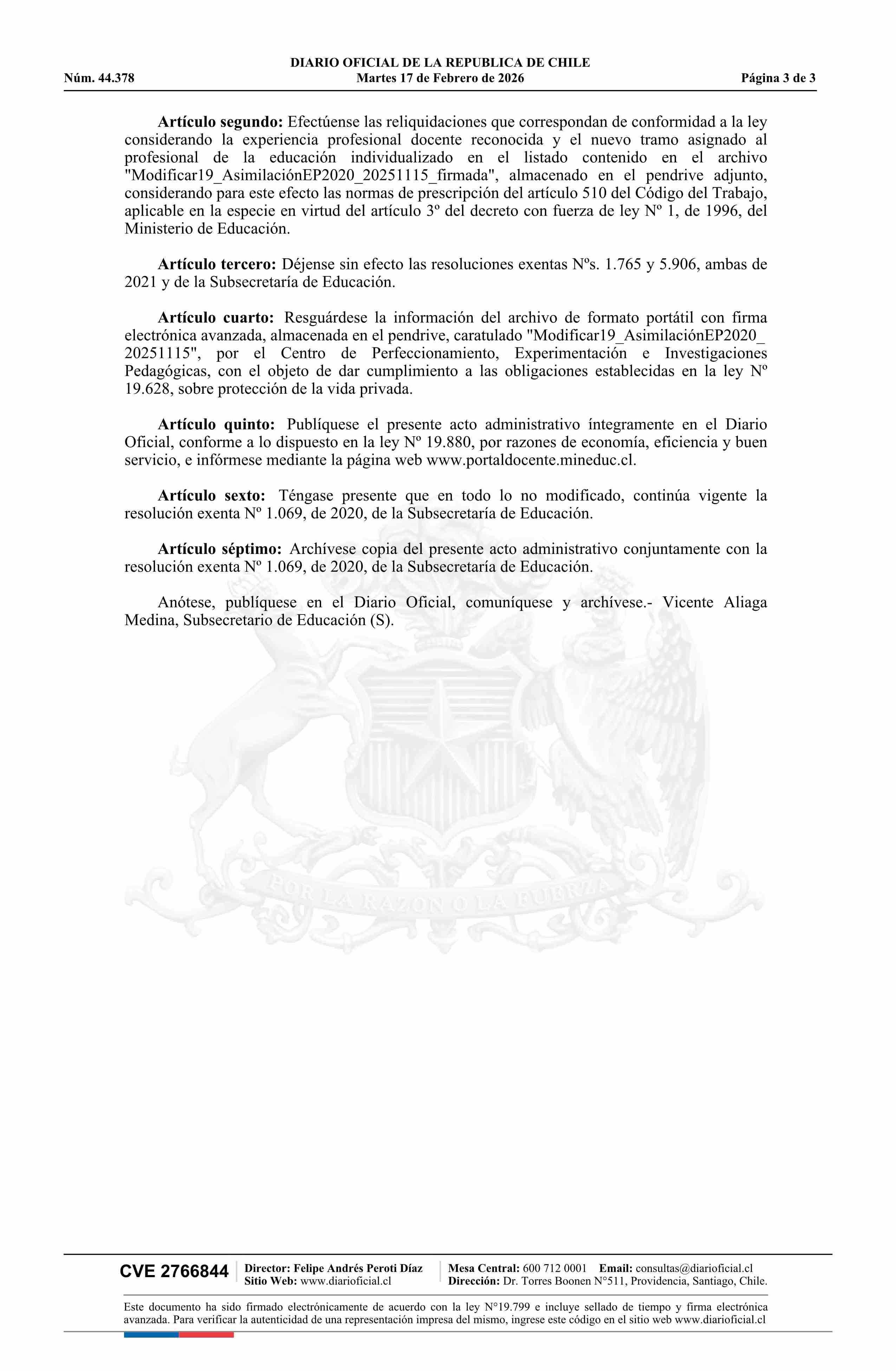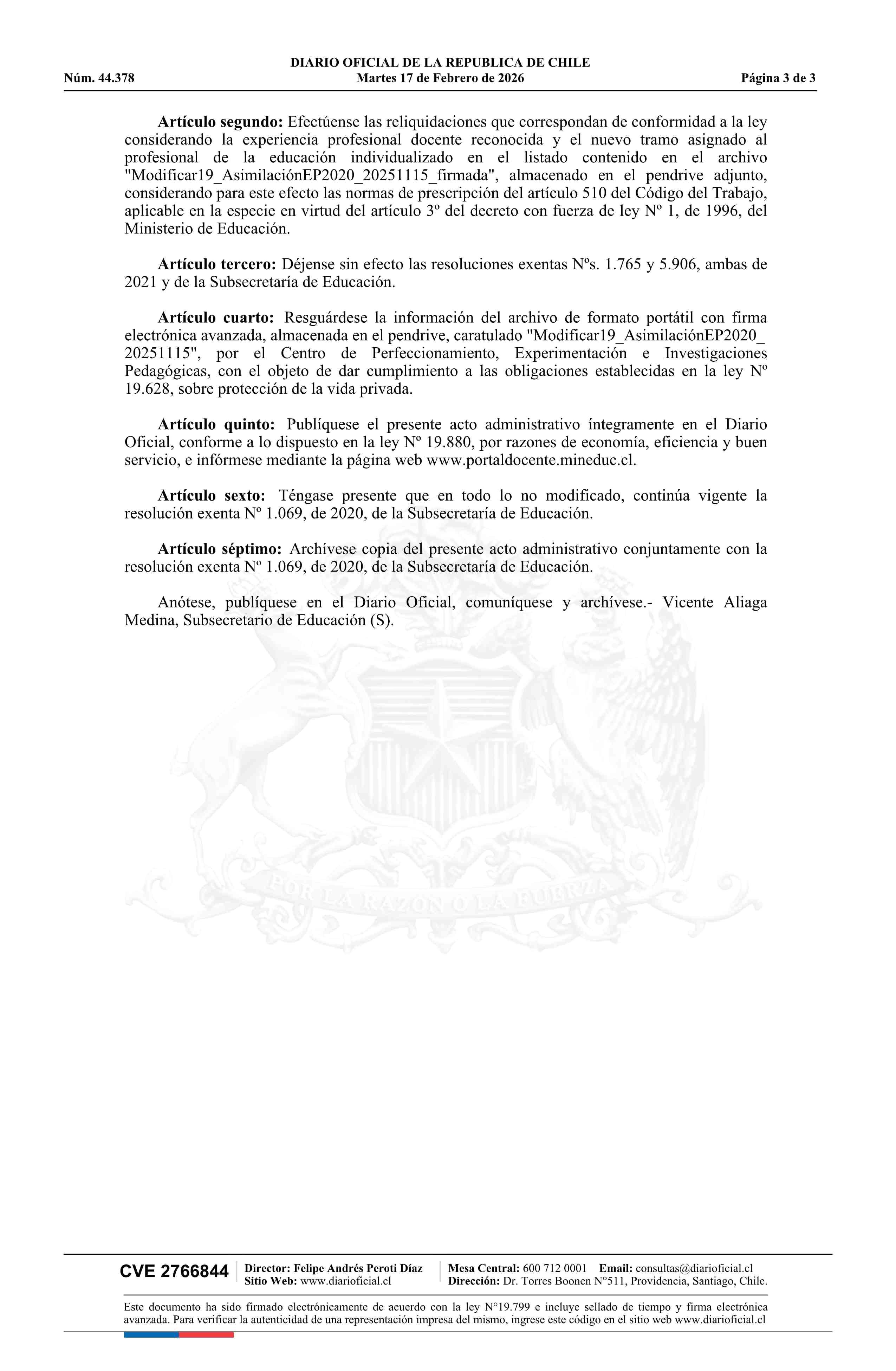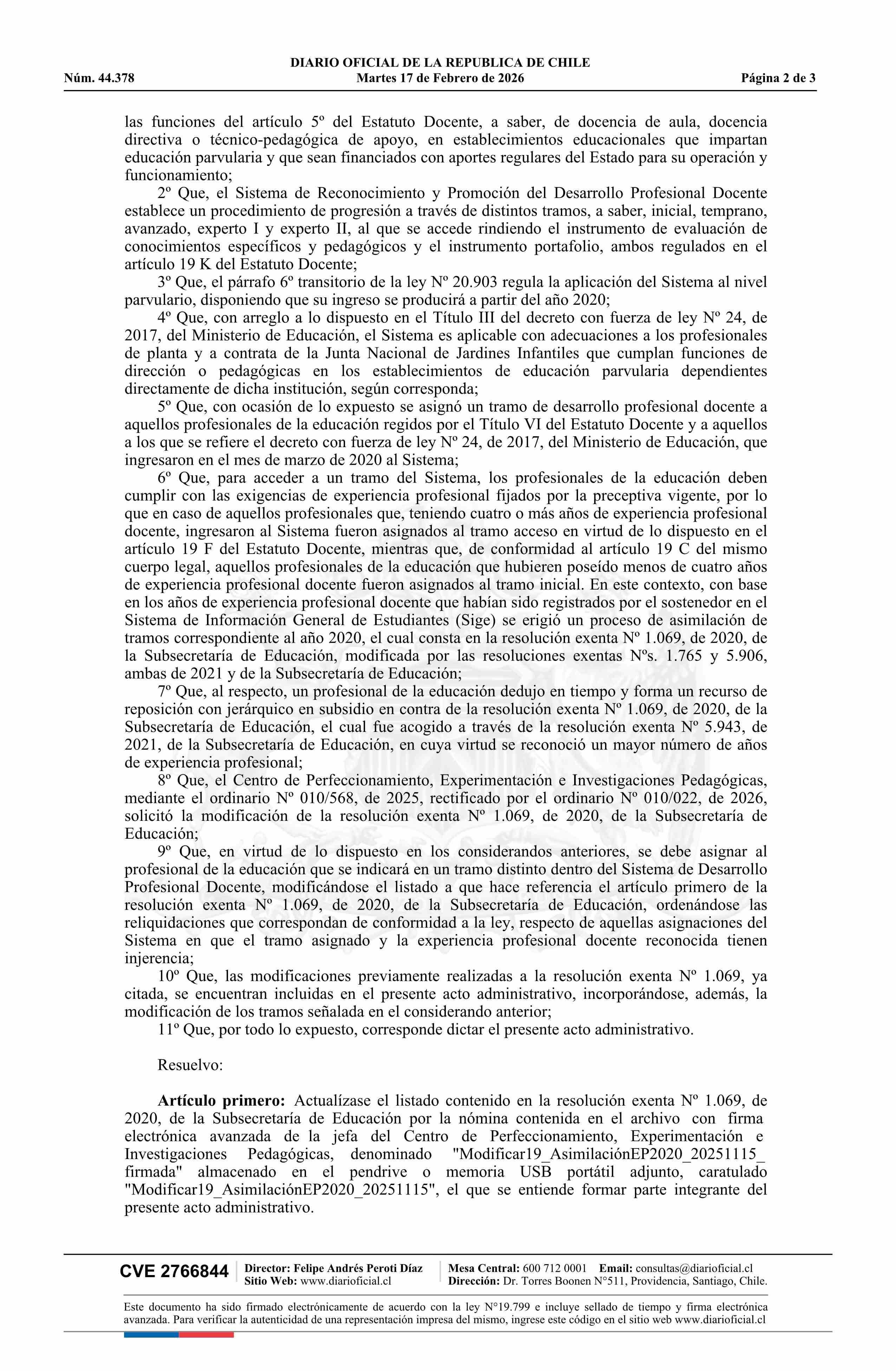 | Título: | Resolución exenta número 587, de 2026.- Actualiza el listado contenido en la resolución Nº 1.069 exenta, de 2020, ordena las reliquidaciones que indica y deja sin efecto los actos administrativos que señala |
