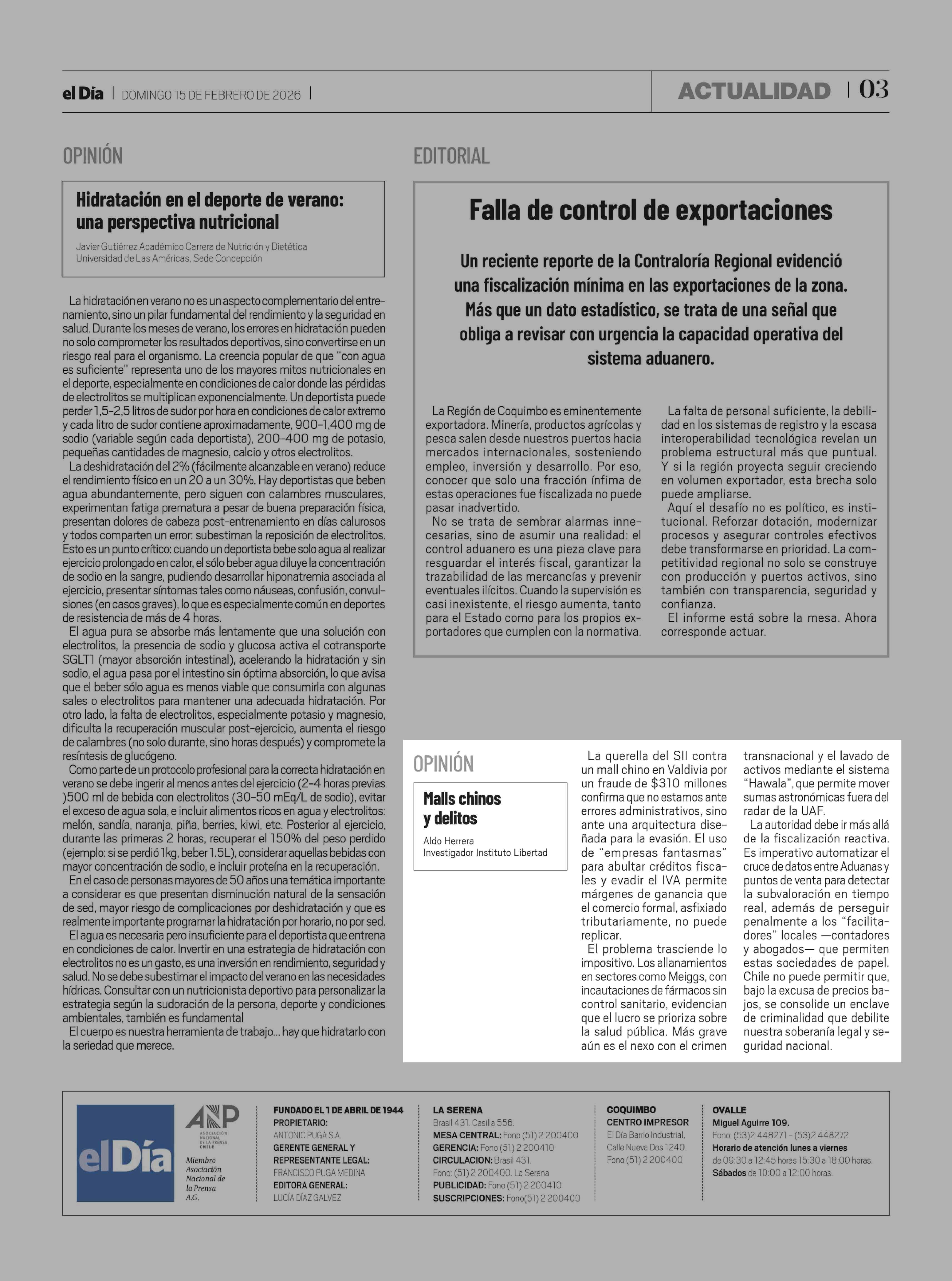 | Fecha: | 15-02-2026 | Sector: | Columnas de Opinión | Región: | Región de Coquimbo |