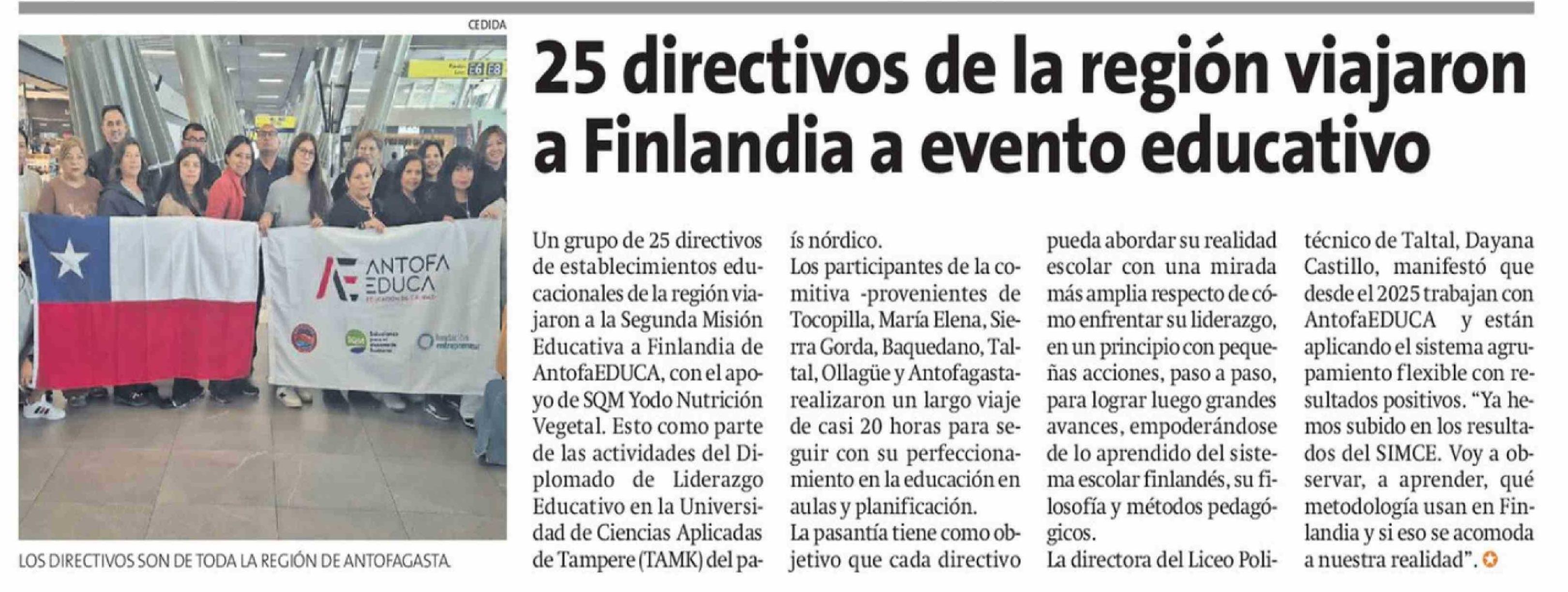 25 Directivos de la región viajaron a Finlandia a evento educativo 13-04-2026 La Estrella de Antofagasta |