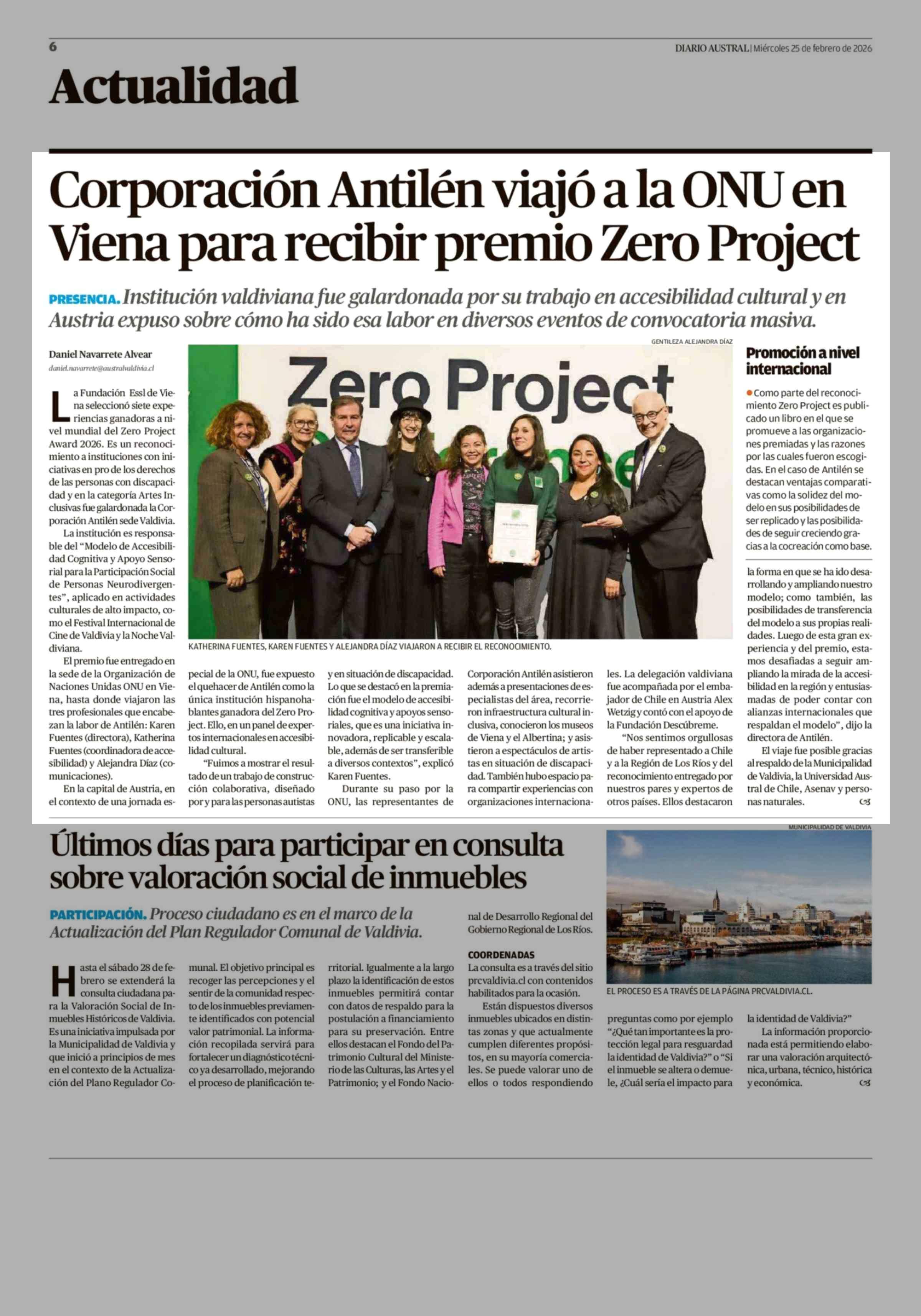 Título: Corporación Antilén viajó a la ONU en Viena para recibir premio Zero Project