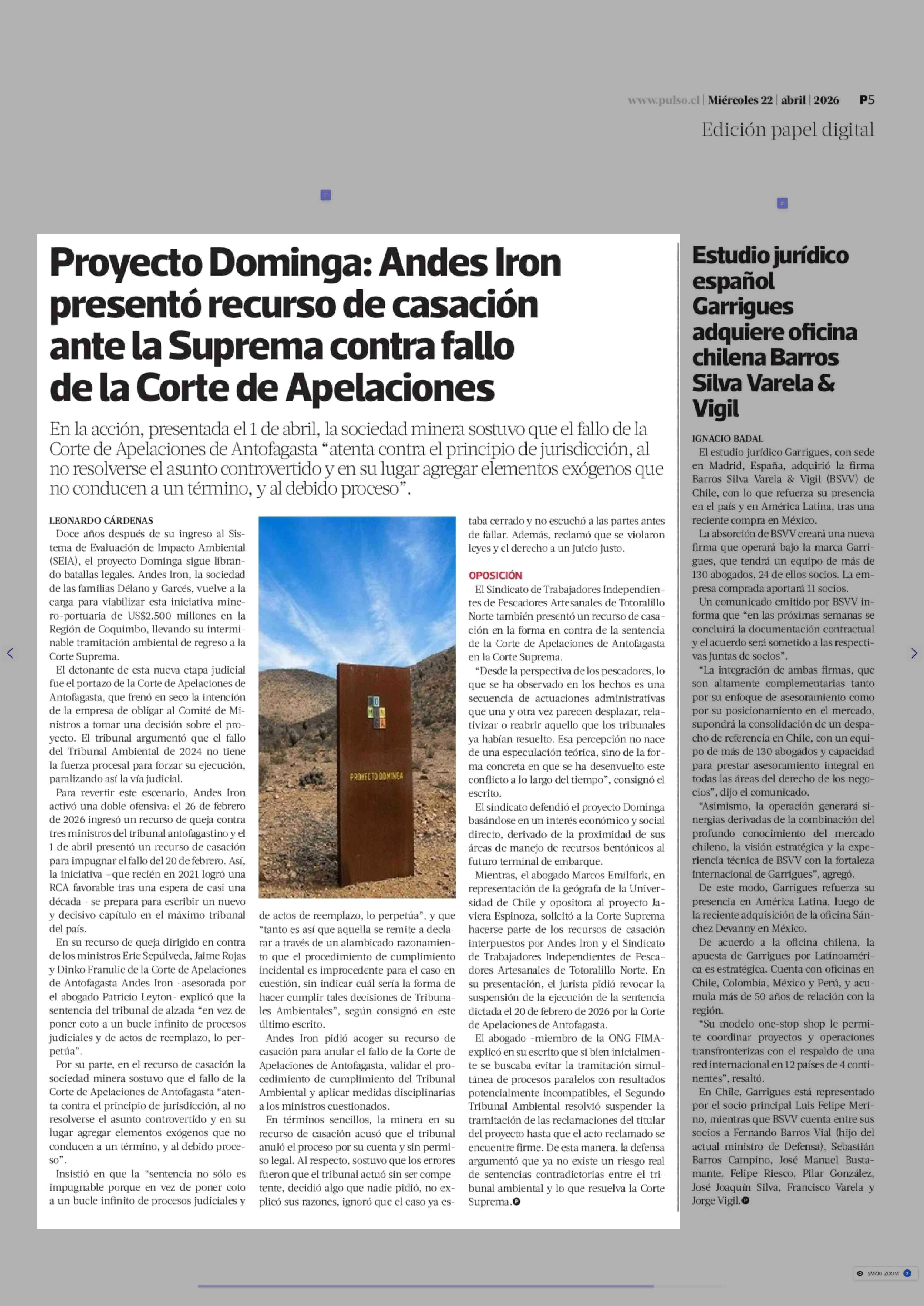 Proyecto Dominga: Andes Iron presentó recurso de casación ante la Suprema contra fallo de la Corte de Apelaciones 22-04-2026 La Tercera |