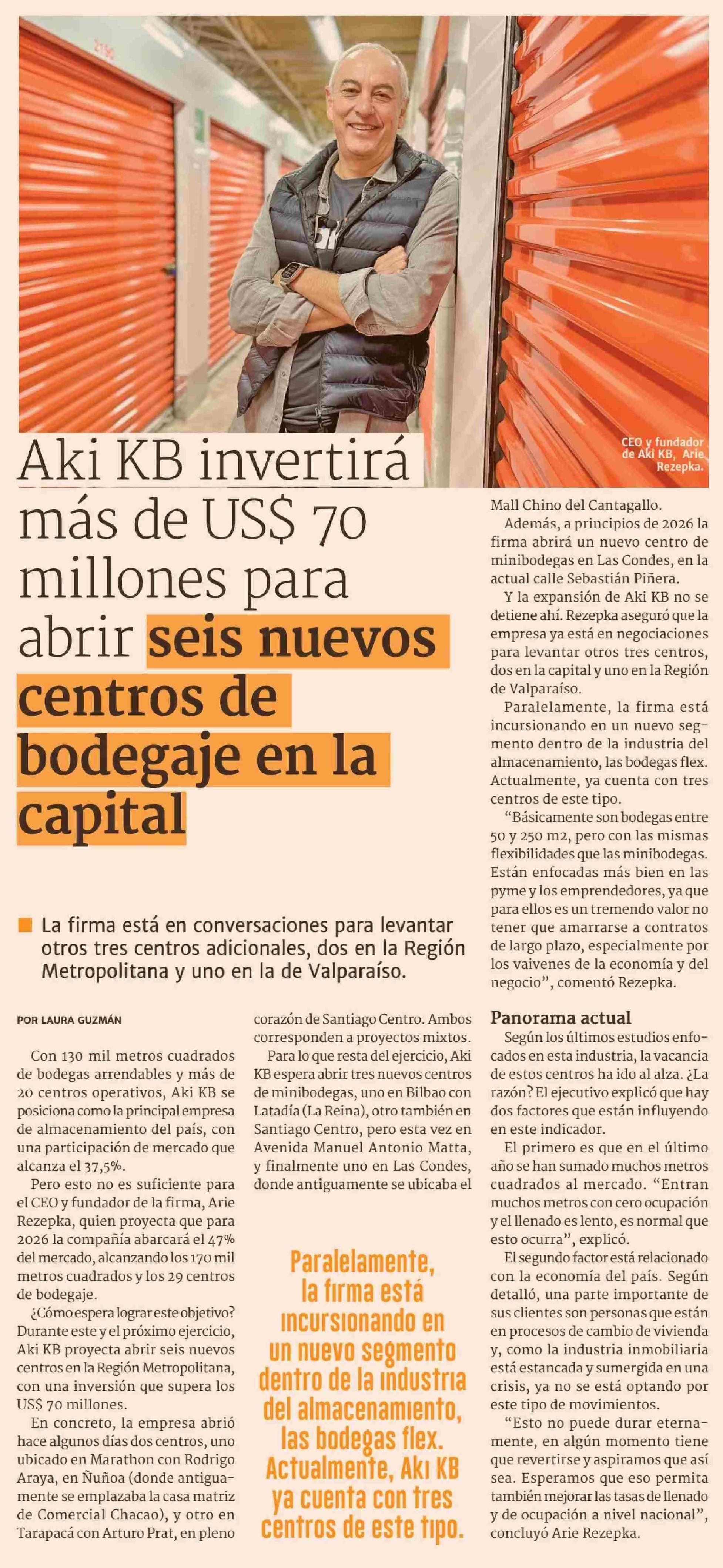 | Título: | Aki KB invertirá más de US$ 70 millones para abrir seis nuevos centros de bodegaje en la capital |